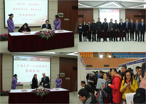 2013年1月10日下午,上海大学与漕河泾新兴技术开发区、上汽乘用车签约仪式在校本部国际会议中心签订,同时,上海大学——漕河泾新兴技术开发区联合招聘会在校本部体育馆举行。