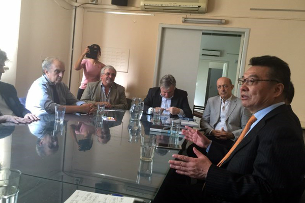 4月6日上午,代表团会见了阿根廷科学技术委员会主席Alejandro Ceccatto先生以及其下属的劳工部代表,双方回顾了以往合作历史,并就共同建立中阿联合研究中心签署了合作协议。4月7日上午,双方在劳工部科学会堂举行了双边论坛,党委书记罗宏杰教授就我校建设高水平大学举措以及国际化战略思想发表演讲。我校全球学研究中心主任郭长刚教授,就全球研究与阿根廷合作做了大会主旨报告。随后,举行了上海大学与阿根廷科学技术委员会建立中阿联合研究中心的揭牌仪式。