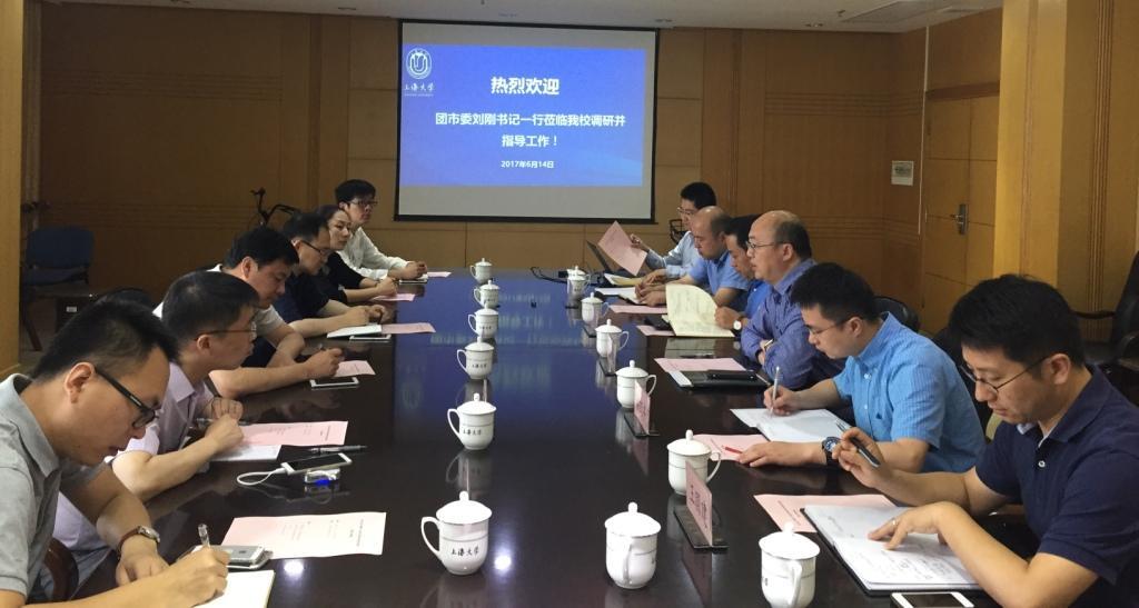 6月14日,共青团上海市委副书记刘刚一行来我校调研第十五届“挑战杯”全国大学生课外学术科技作品竞赛筹备情况,共青团上海市委学校工作部部长徐速、副部长任浡,学校工作部干部韩晗、张昊、李骁髯、许从从;校党委副书记、副校长徐旭,校党委宣传部部长李坚,党政办公室副主任秦凯丰,学生工作办公室副主任王国建,对外联络处副处长曹俊,校团委书记许烁等相关部门负责同志出席了会议。会议由秦凯丰主持。