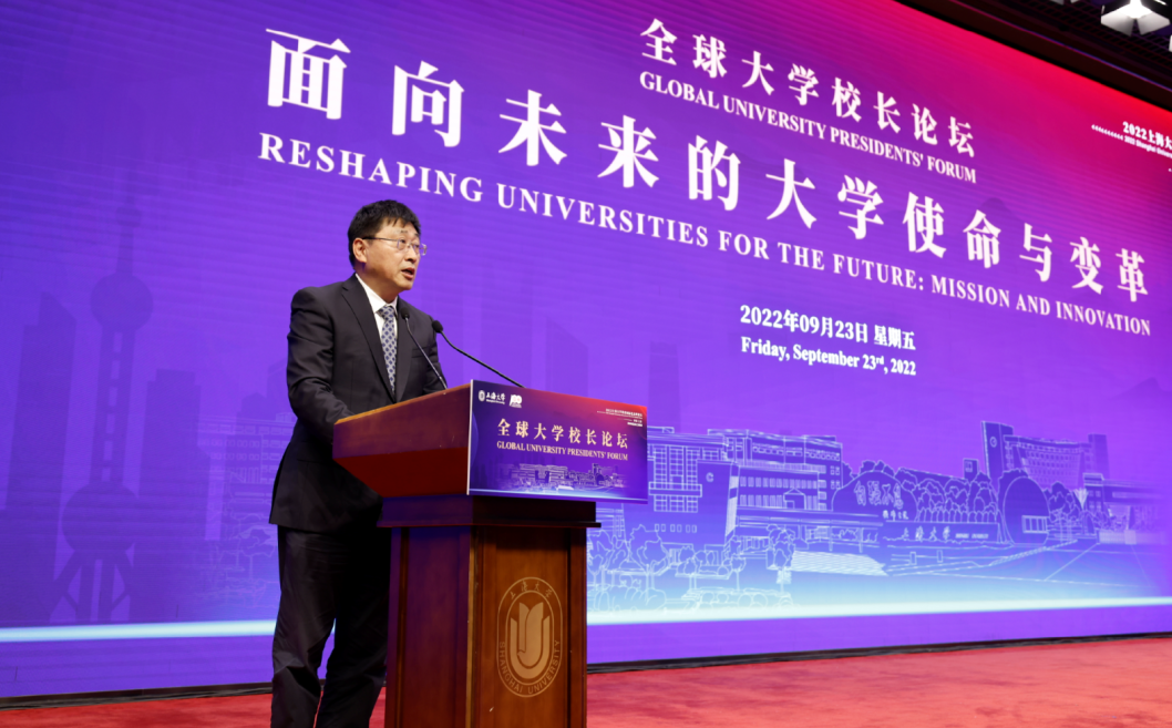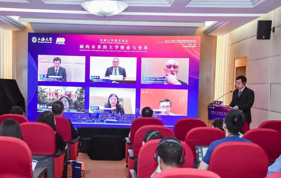 9月23日下午,“纪念上海大学建校100周年·全球大学校长论坛暨教育国际化高峰论坛”在上海大学宝山校区图书馆报告厅举办,论坛主旨报告和圆桌对话环节面向全球进行双语直播。来自全球24所中外大学的校长出席,百余人现场参会,近一万七千人次在线观看。论坛以“面向未来的大学使命与变革”为主题,以传扬大学精神、勇担大学使命、共谋大学合作为关键词,共同探讨现代大学变革发展的意义与途径。论坛设置主旨发言及四场圆桌对话,就相关议题展开讨论。开幕式由校党委副书记欧阳华主持。
