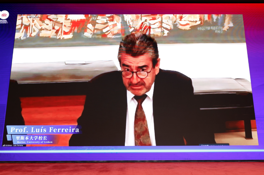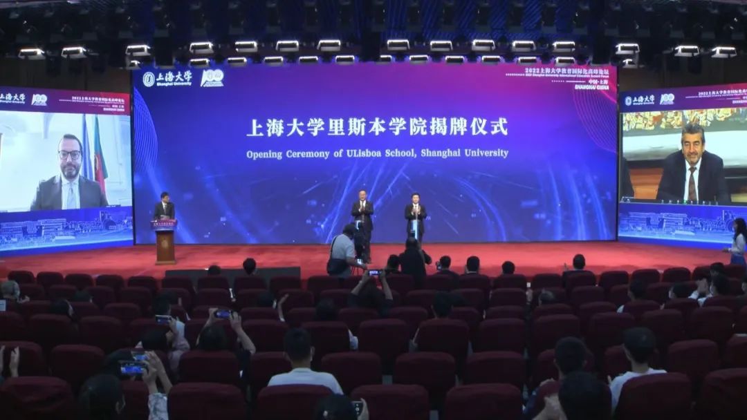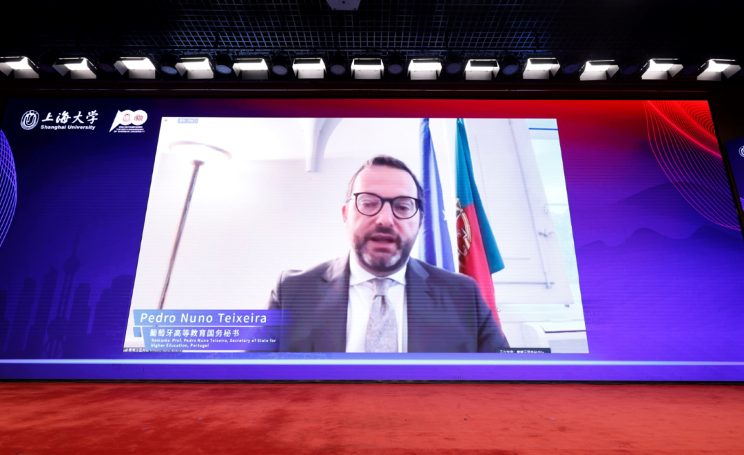 上海大学里斯本学院揭牌仪式举行。葡萄牙高等教育国务秘书Pedro Nuno Teixeira、里斯本大学校长Luis Ferreira在云端与上海大学成旦红书记、刘昌胜校长现场连线,共同按下了揭牌按钮。