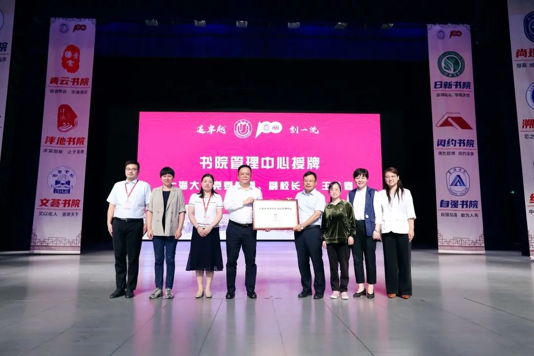 上海大学党委常委、副校长王从春为书院管理中心授牌。