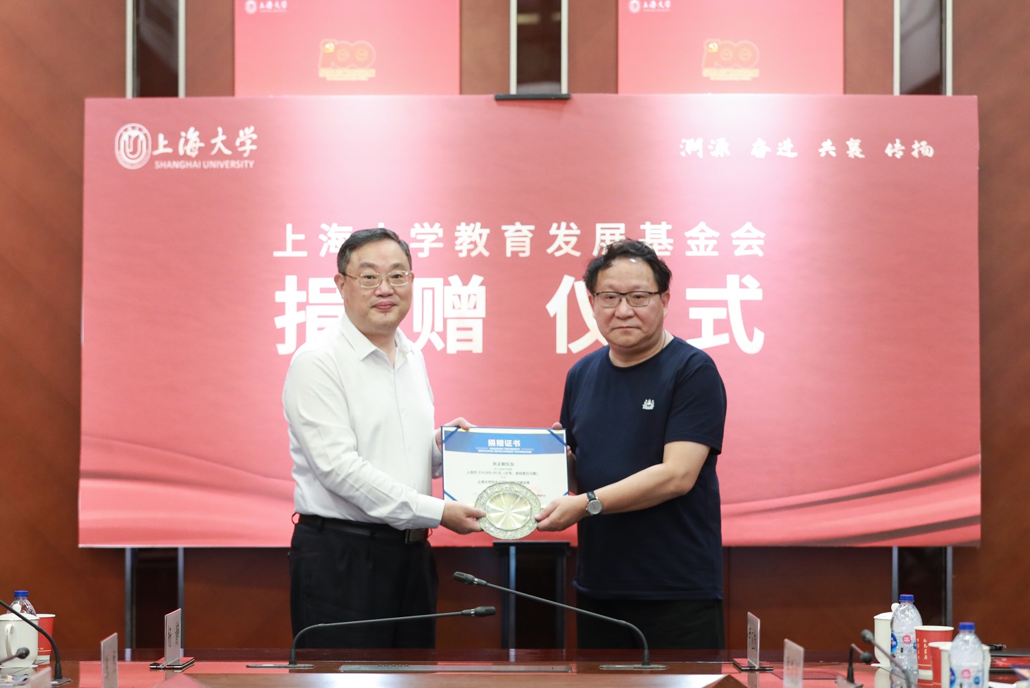 会前举行捐赠仪式。基金会监事、上海大学校友会理事、上海东方环发律师事务所主任张正勤律师向上海大学捐赠31万元,用于支持上海大学校史工程的挖掘与建设等工作,并向学校赠送图书。欧阳华副书记和秦凯丰理事长代表学校接受捐赠支票,王远弟书记代表图书馆接受捐赠图书。成旦红书记向张正勤校友颁发捐赠证书和捐赠纪念盘。