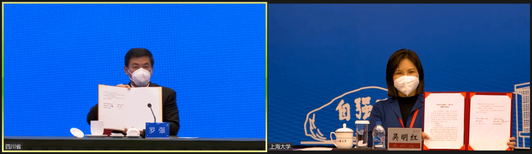 12月13日下午,四川省人民政府与上海大学以视频连线形式签署战略合作协议。四川省委常委、组织部部长于立军,上海大学校长、中国科学院院士刘昌胜出席签约仪式并讲话。