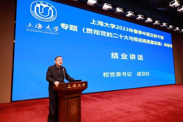 校党委书记成旦红对本次研修班进行了总结,结合学校2023年“贯彻、统筹、奋进”三个关键词,提出了三项工作要求:一是要坚持学深悟透,深入学习贯彻党的二十大精神,形成推动学校事业高质量发展的强大动力。要坚持原原本本地学;党员干部要坚持“带头学、带头讲、带头干”;要在贯彻落实上下功夫,在指导实践、推动工作上见成效。二是要加强科学统筹,坚定不移走好学校高质量发展、高效能治理的新路。要统筹聚力,以新一轮本科教育教学审核评估为契机,不断凝聚人才培养的合力;加强顶层设计,统筹推动学校学科建设发展再上新台阶;梳理问题清单,统筹提升内控建设,不断提升学校治理效能。三是要坚持团结奋进,奋力谱写上海大学新百年的新篇章。要有直面问题不避难的勇气、有踏平坎坷成坦途的豪气、有争创一流立潮头的志气,以饱满的精神状态和主人翁意识,踔厉奋进、笃行不怠,为学校早日建成世界一流大学做出新的更大的贡献!