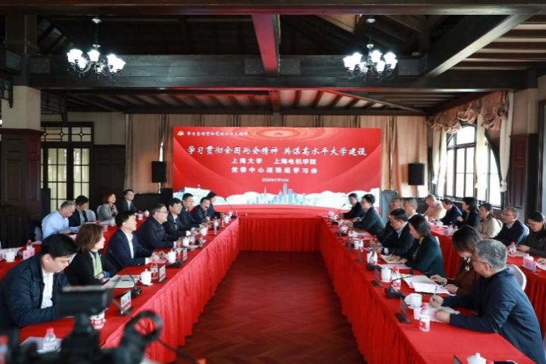 3月10日下午,上海大学与上海电机学院党委中心组联组学习会在上海大学宝山校区举行。本次联组学习会的主题是“学习贯彻全国两会精神 共谋高水平大学建设”。上海大学党委书记成旦红,党委副书记、校长刘昌胜,上海电机学院党委书记鲁雄刚,党委副书记、院长龚思怡,以及两校中心组成员、相关部处和学院负责同志出席会议。上海大学党委书记成旦红主持联组学习会并作会议总结。