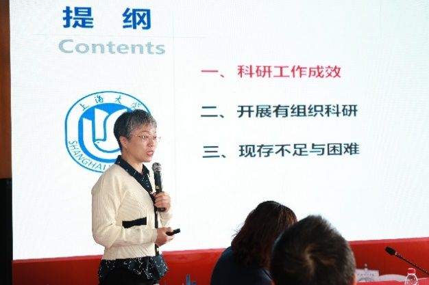 上海大学组织人事部副部长、人事处处长刘丽兰,科研管理部副部长、质量管理办公室主任谢为群分别围绕上海大学人事绩效改革工作和有组织的科研管理工作做了汇报交流。