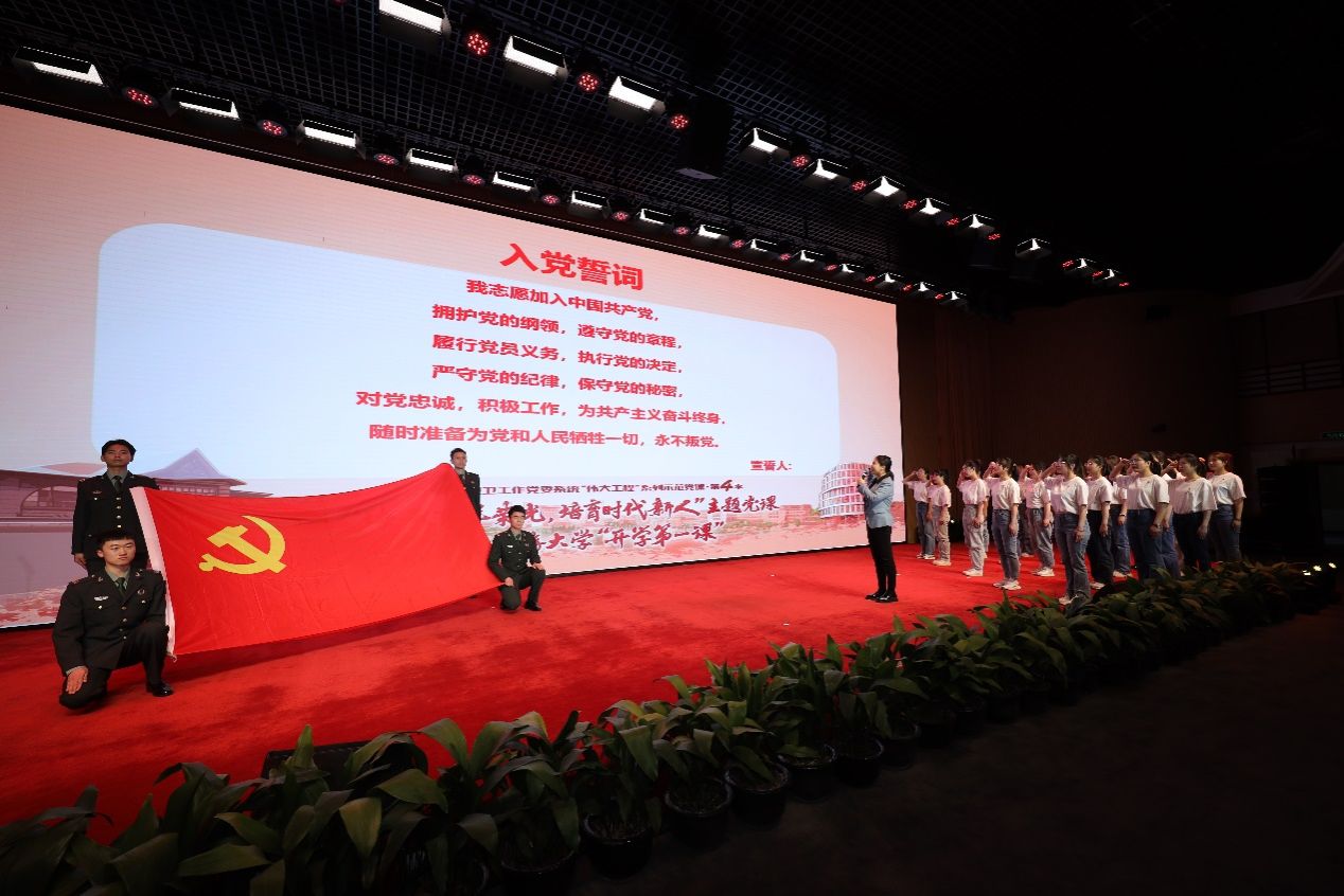 最后,上海大学副校长、中国工程院院士吴明红教授带领全场师生党员面向党旗重温入党誓词。