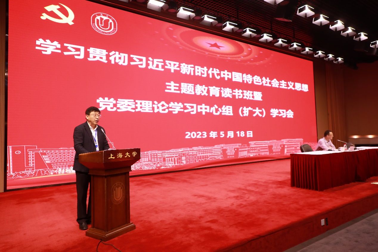 5月18日下午,上海大学党委举办学习贯彻习近平新时代中国特色社会主义思想主题教育读书班第五讲暨党委理论学习中心组(扩大)学习会。校领导班子成员、全校各单位中层干部现场参加学习,市委第十八巡回指导组王娟同志列席学习会。会议由校党委副书记欧阳华主持。