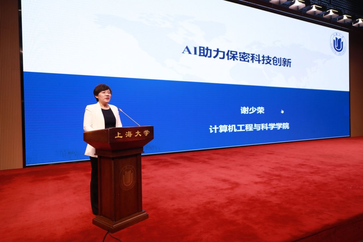复合材料研究中心常务副主任任慕苏和计算机工程与科学学院院长谢少荣作为保密先进代表交流发言,分享了保密工作优秀经验。