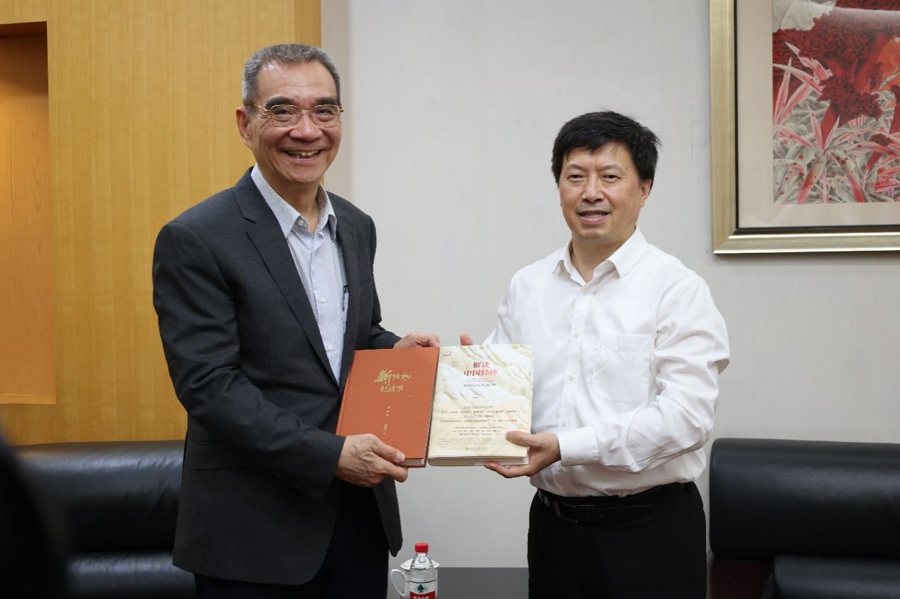 会前,校党委书记成旦红,校党委副书记、校长刘昌胜等校党委班子成员与林毅夫教授亲切会谈,双方互赠书籍。