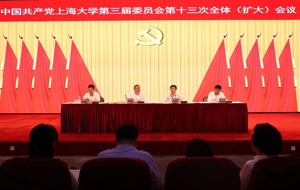7月17日,中国共产党上海大学第三届委员会第十三次全体(扩大)会议在宝山校区召开。校党委委员出席会议。校纪委委员,部分党代表,各单位负责同志,党风廉政监督员,部分全国、市人大代表及政协委员等列席会议。会议由校党委副书记、校长刘昌胜受党委常委会委托主持。
