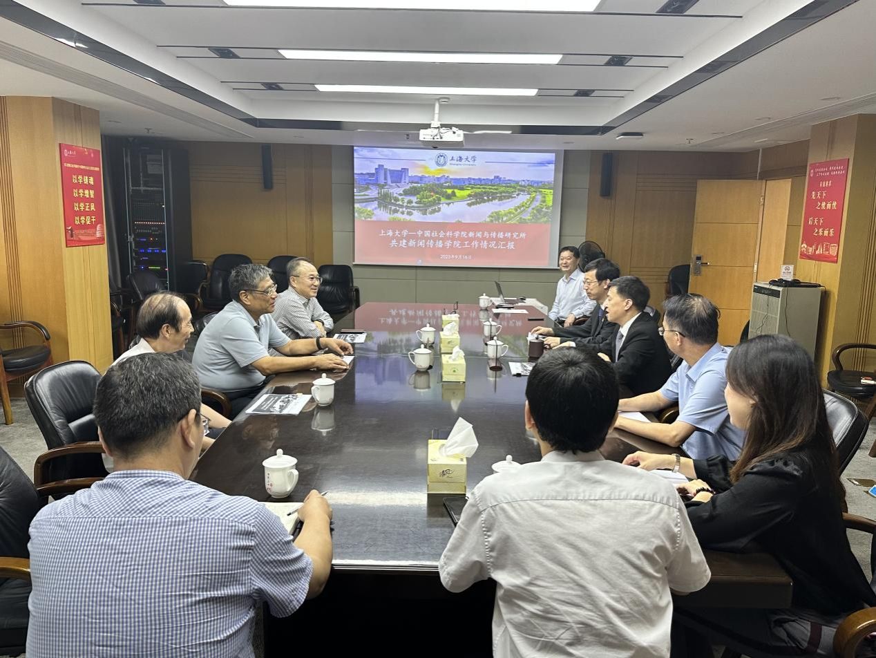 会上,上海大学新闻传播学院院长严三九汇报了所校共建新闻传播学院的工作推进情况。