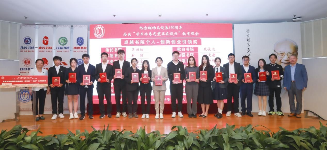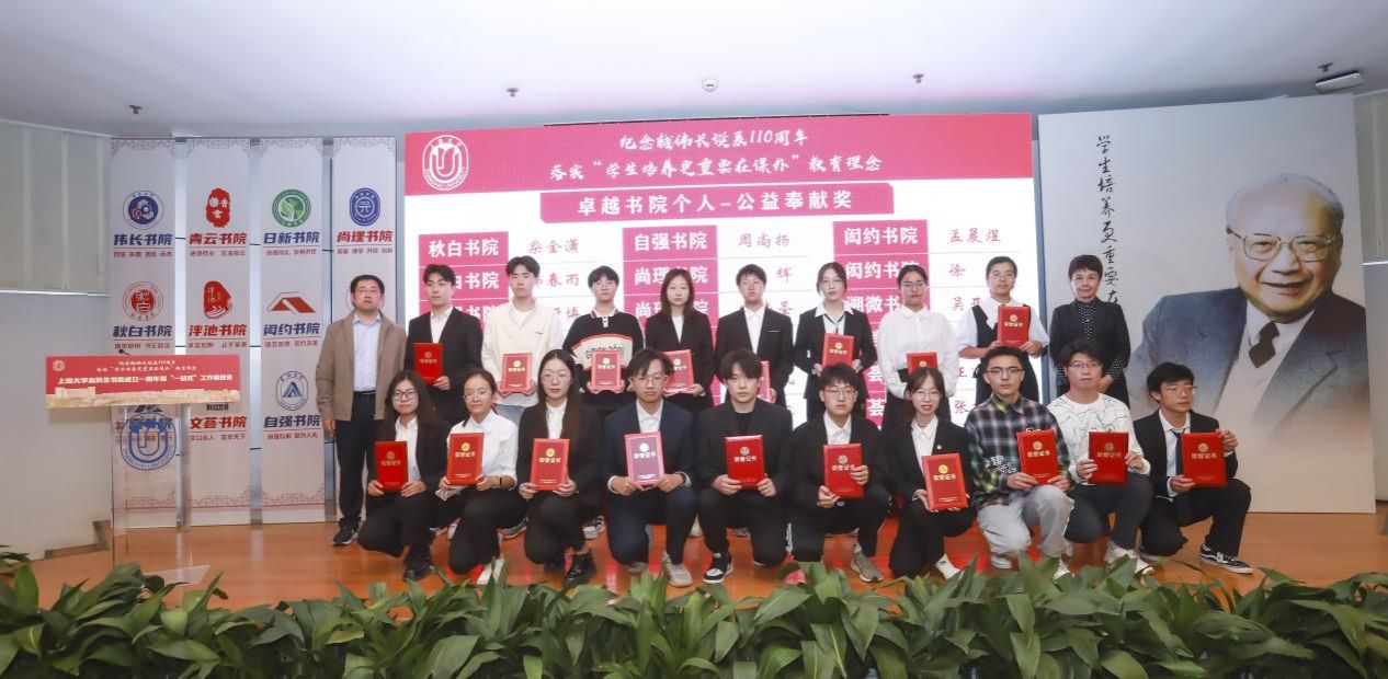 为进一步支持上海大学本科生书院的建设发展,激励全体本科生在书院培养平台不断进取,成为信念坚定、品德优良、全面发展的卓越创新人才,引领同学们牢记时代责任,坚定跟党走、建功新时代,同时进一步推进中国银行与上海大学的合作走向深化,中国银行于2023年起在上海大学特设“卓越书院奖学金”,用于奖励书院制下能够代表和彰显书院文化特色的优秀书院、学生组织和个人。本次推进会共颁发了多项荣誉,包括书院建设先锋奖、五育并举引领奖、创新创业引领奖、卓越领导奖以及公益奉献奖等。