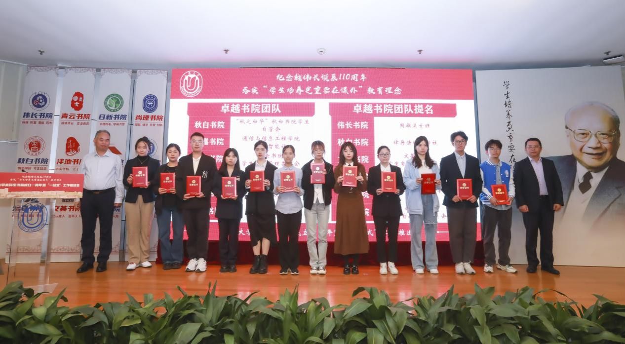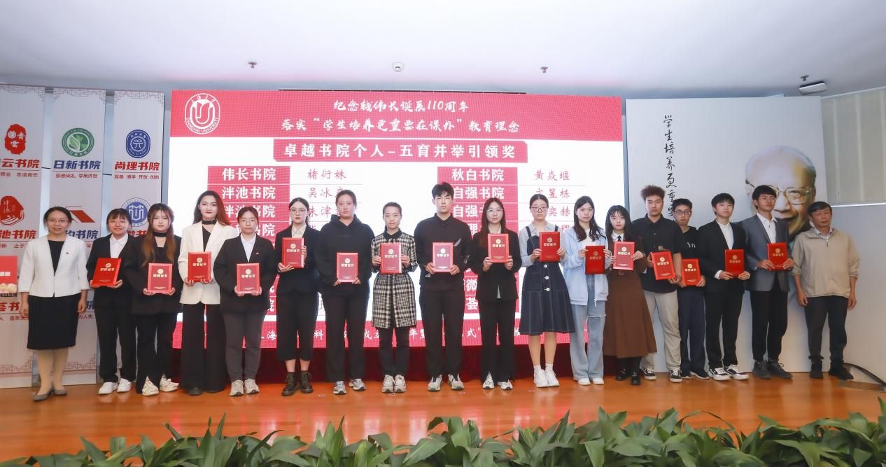 文荟书院院长沈瑶、校团委书记冯凌燕为伟长书院褚衍姝等16名同学颁发五育并举引领奖。