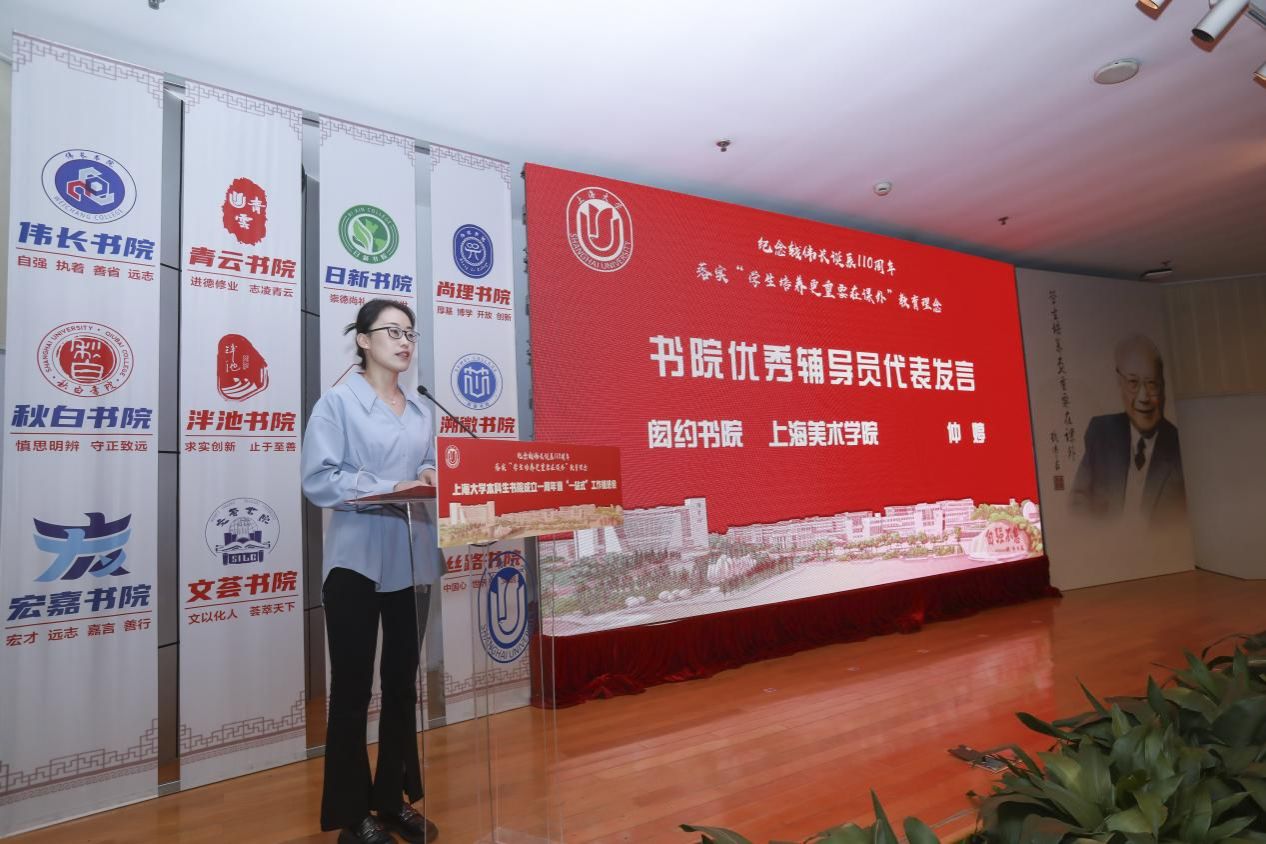 闳约书院、上海美术学院仲婷作为优秀辅导员代表发言,她从自身辅导员经历出发,阐述了对书院辅导员工作的理解,表达了对书院思政育人工作的体会与感悟。