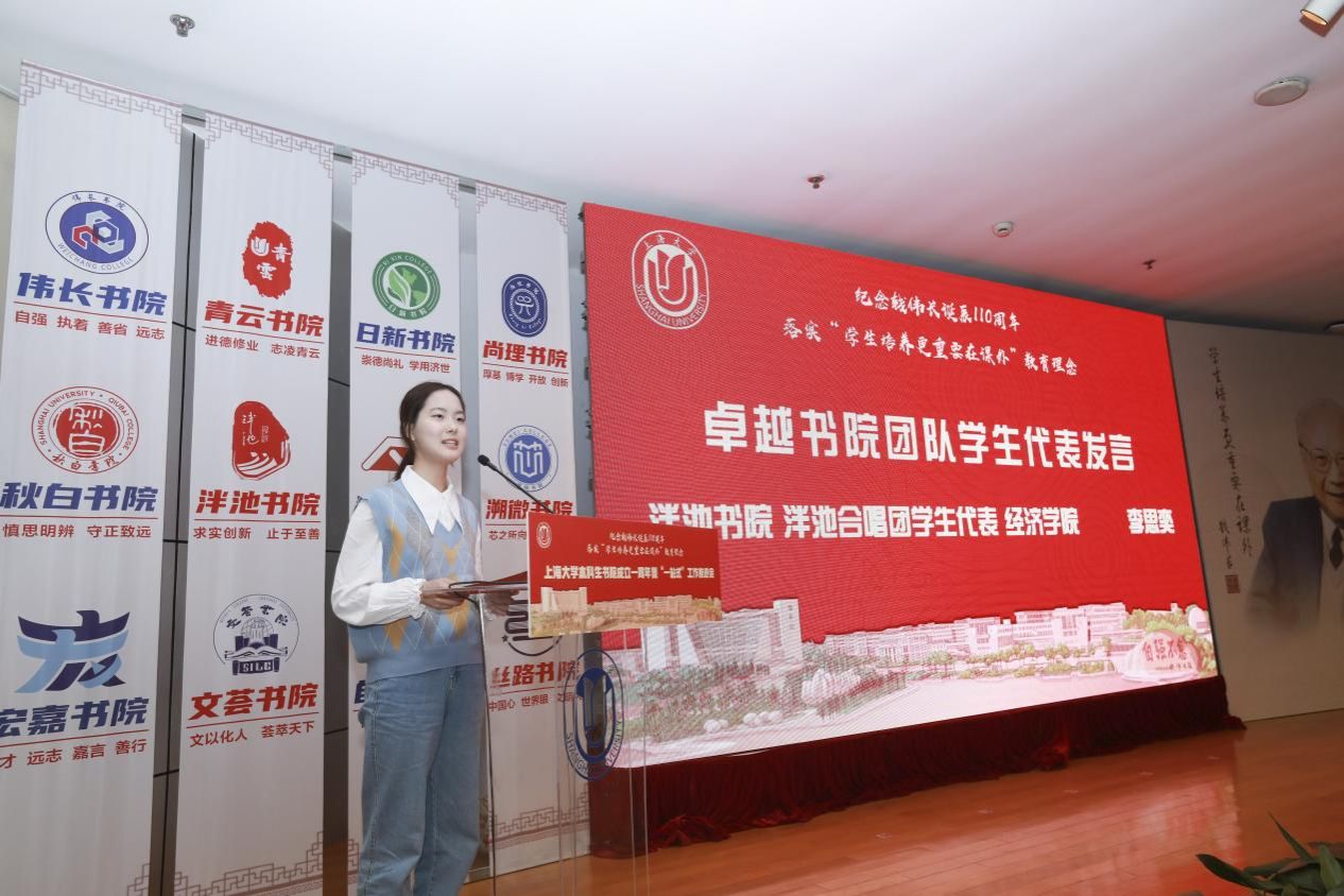 泮池书院泮池合唱团学生代表,来自经济学院的李思奕同学作为获奖学生代表也发表感言,分享在书院跨学科平台上获得的美育资源和发展。
