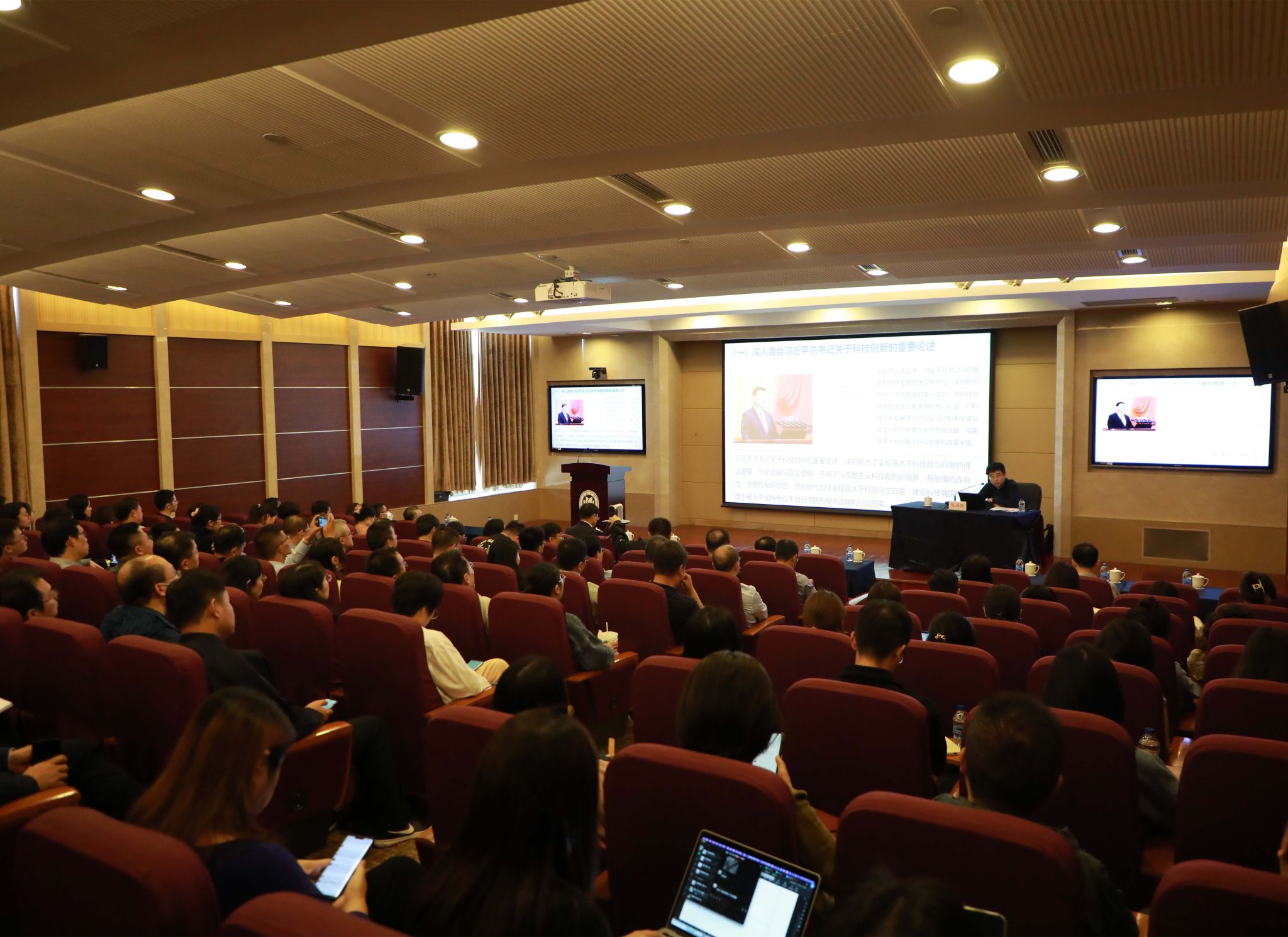 2023年10月11日,上海大学举办党委理论学习中心组(扩大)学习会,邀请上海市科学学研究所党总支书记、副所长(主持工作)陈海鹏来校,作“贯彻落实党的二十大精神,强化科技创新体系建设”辅导报告。学校校院两级党委中心组成员、机关各部处干部以及部分学院师生代表参加学习。会议由校党委副书记欧阳华主持。