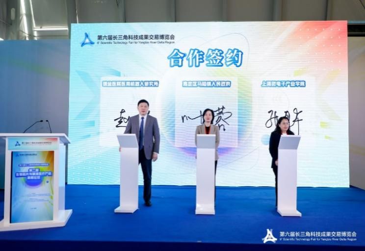 上海大学上海微电子产业学院、马陆镇人民政府、上海交通大学医学院附属瑞金医院医用机器人研究所在现场进行战略合作签约。未来,三方将围绕加快医用机器人微型化研制,打造“产学研医政”高度融合的医用机器人创新生态全面合作,助力嘉定建设高性能医疗器械和精准医疗产业集群。