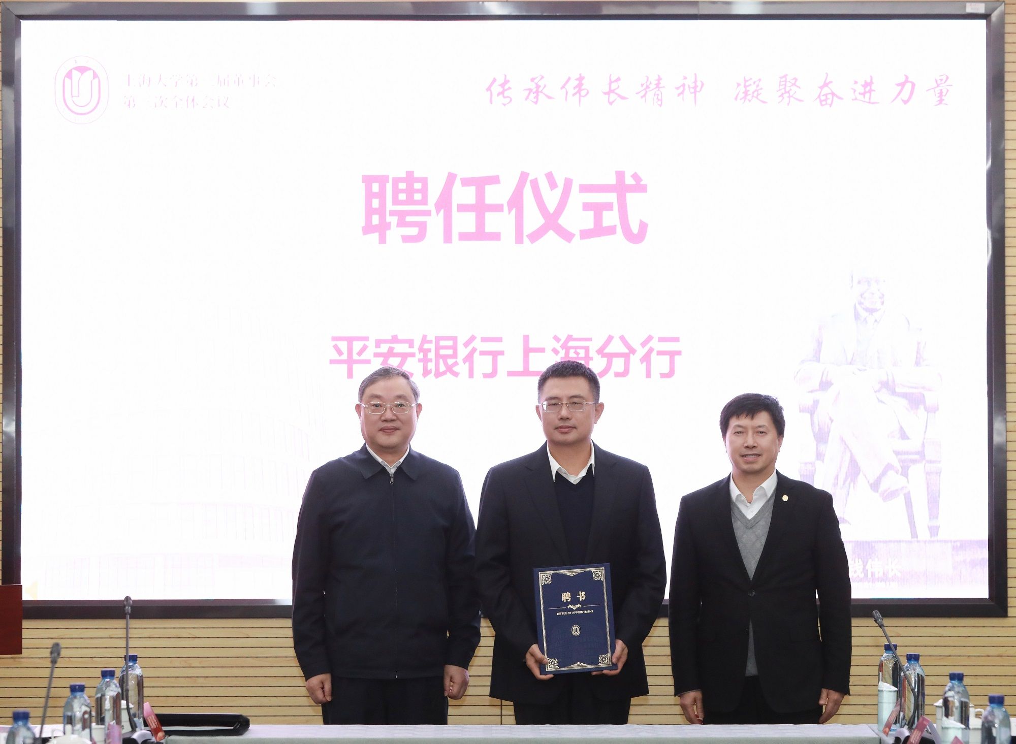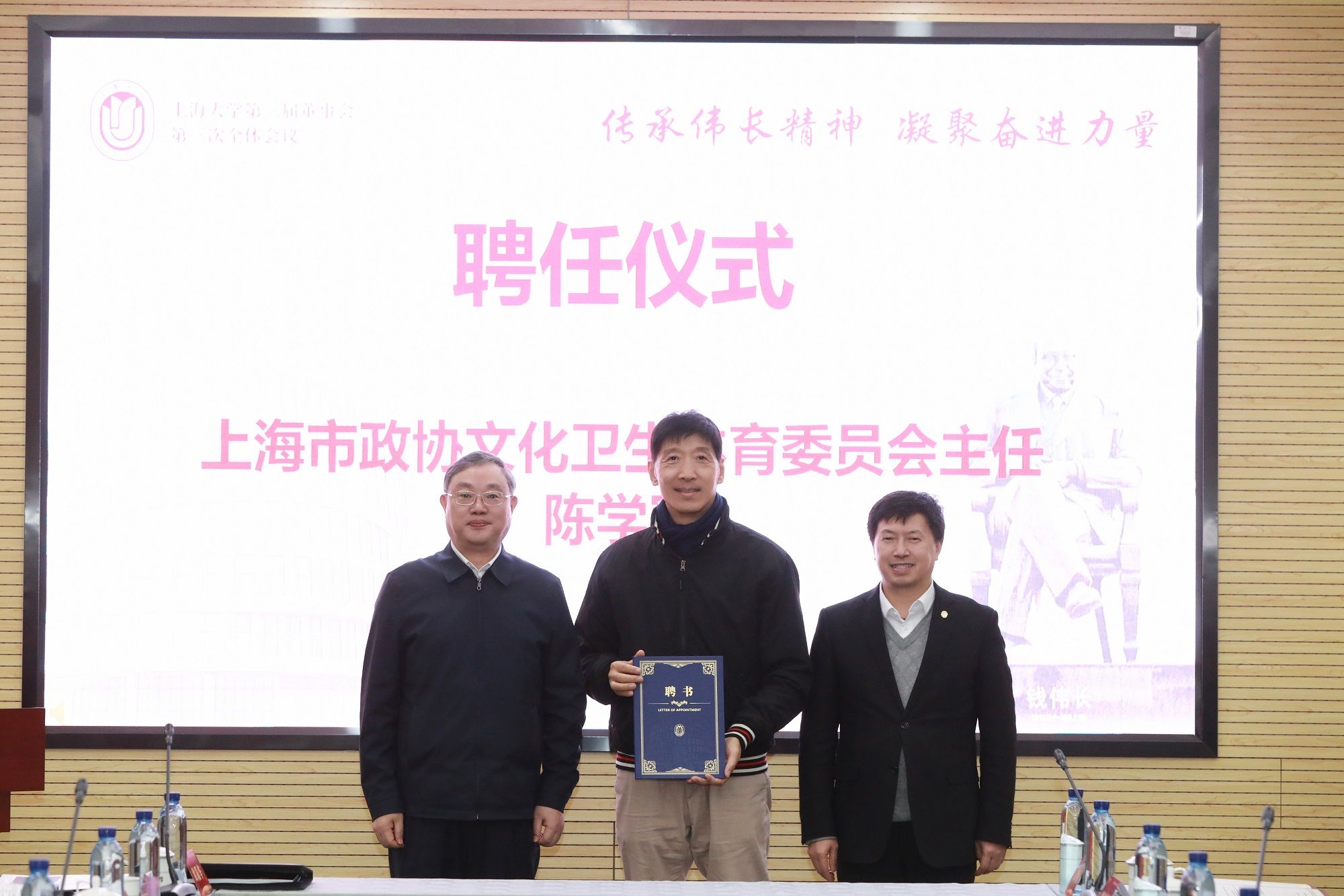 大会审议并通过了《上海大学第三届董事会成员调整提案》。成旦红书记和刘昌胜校长为新任职务董事、董事单位和个人董事颁发聘书,并合影留念。