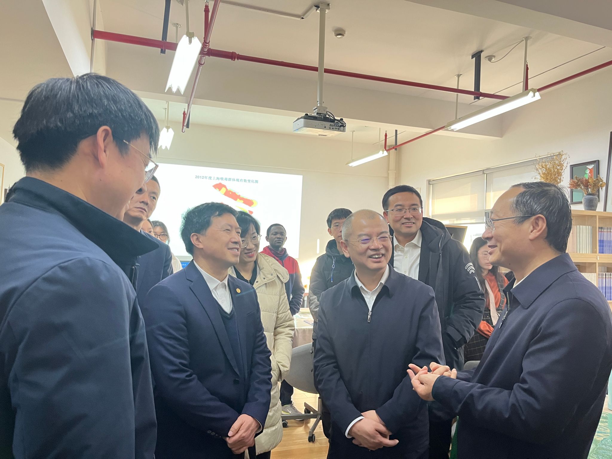 督导检查期间,督导组一行通过听取汇报、翻阅资料、实地察看等方式,重点了解了上海大学国际禁毒政策研究中心近年来围绕国家和上海市交办的禁毒领域科学研究、决策咨询等各项工作的开展情况,对中心在禁毒领域所取得的各项成绩给予了高度肯定。
