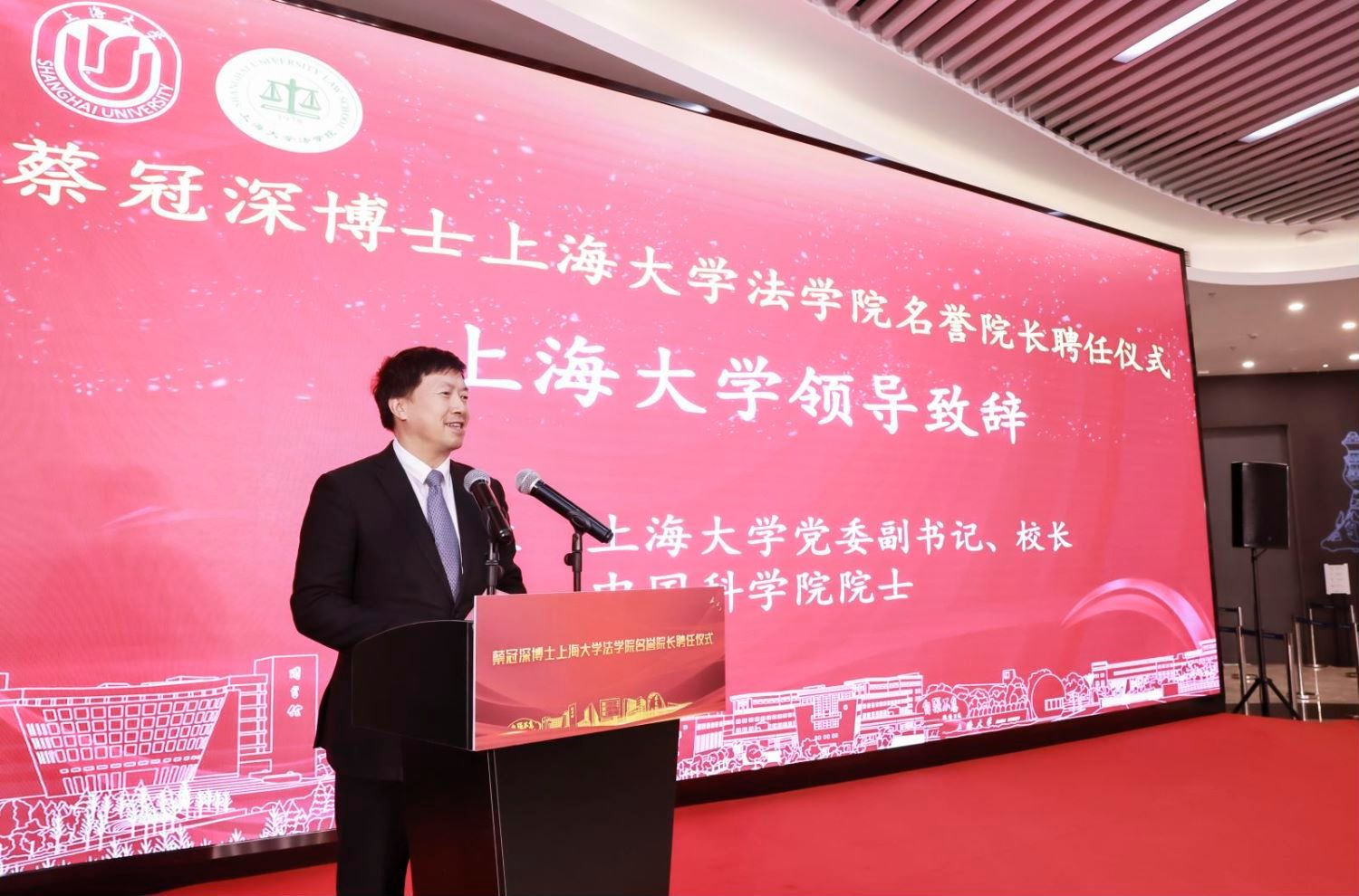 在蔡冠深博士上海大学法学院名誉院长聘任仪式上,刘昌胜校长代表学校致欢迎辞。