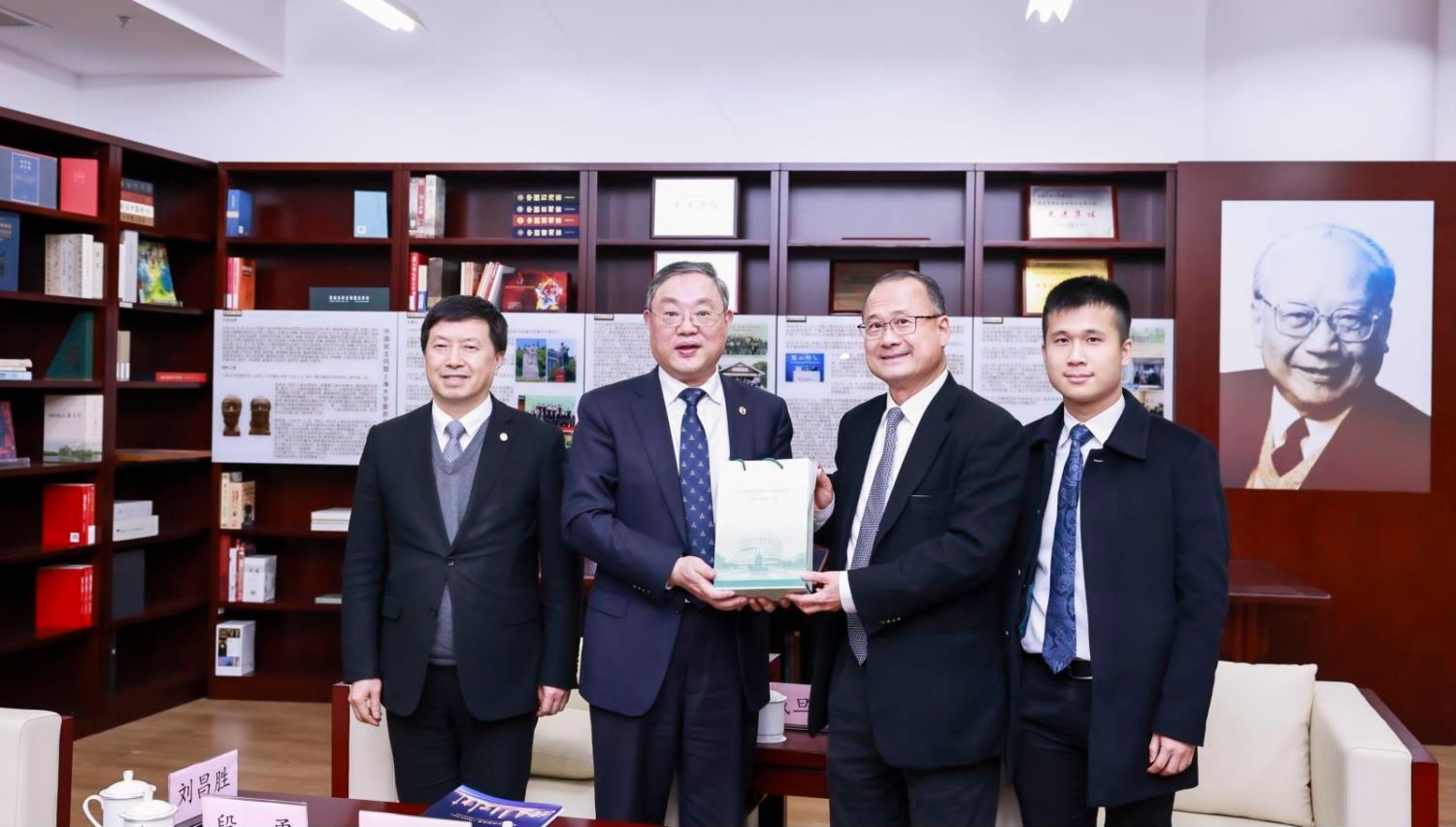 2024年1月19日,应我校邀请,全国政协常委、香港中华总商会会长、粤港澳大湾区企业家联盟主席、香港新华集团主席蔡冠深博士访问上海大学,并出席上海大学法学院名誉院长聘任仪式。上海大学党委书记成旦红教授,党委副书记、校长刘昌胜院士会见蔡冠深博士一行。