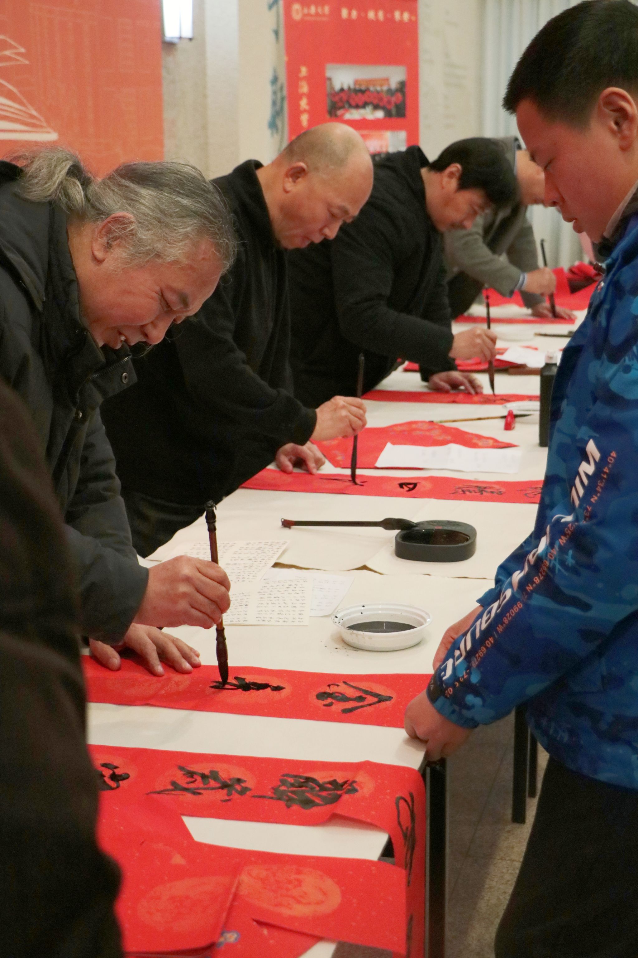 会前,学校图书馆、工会联合党委宣传部,在校本部图书馆二楼展厅举办“墨香迎新、吉龙送福”活动,邀请海派书画家陈志宏与上海大学工会书画协会吴笑、钱楷、曹兴旺三位老师,与广大师生一道挥毫泼墨创作出自己心仪的春联、福字。