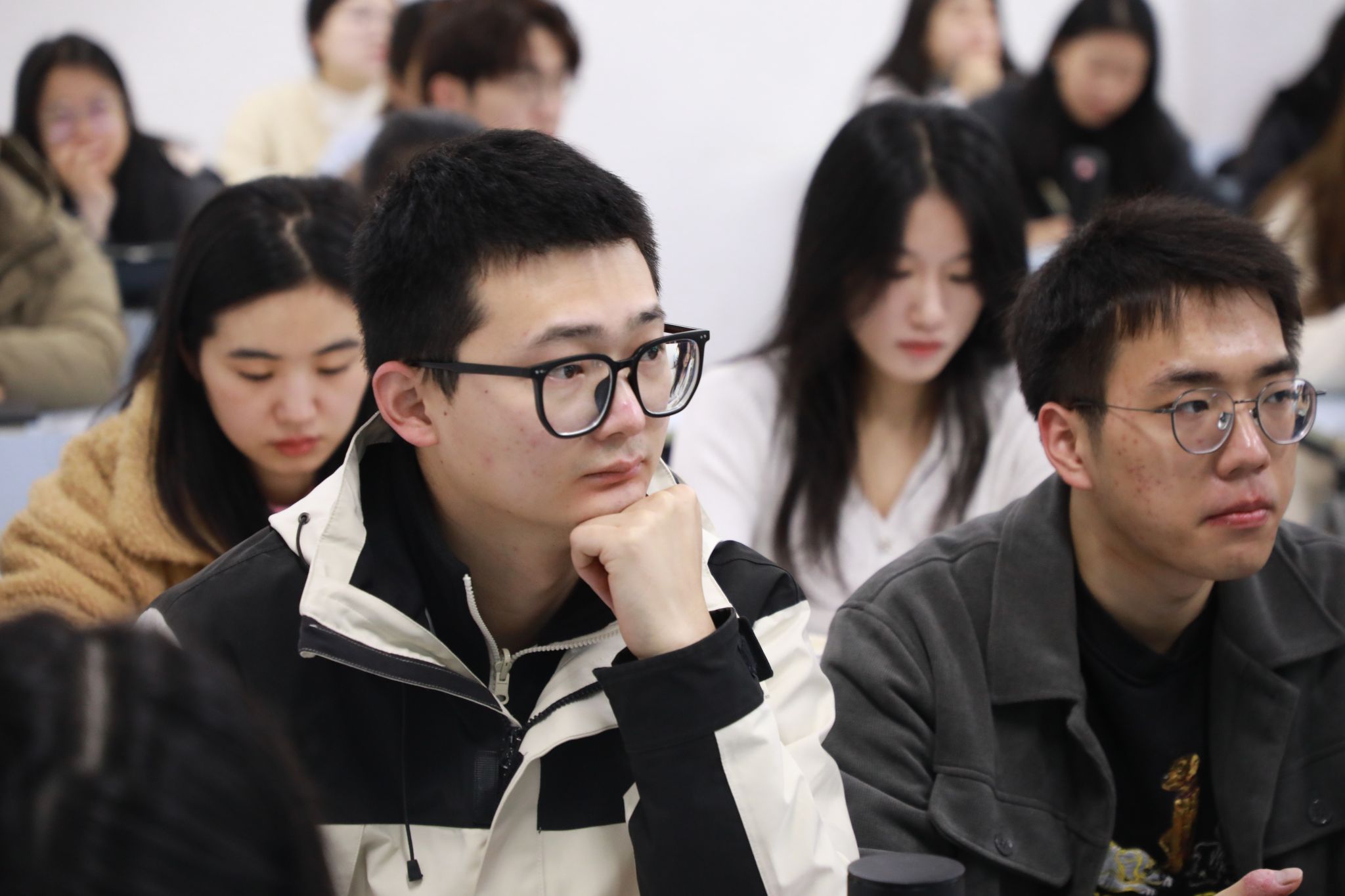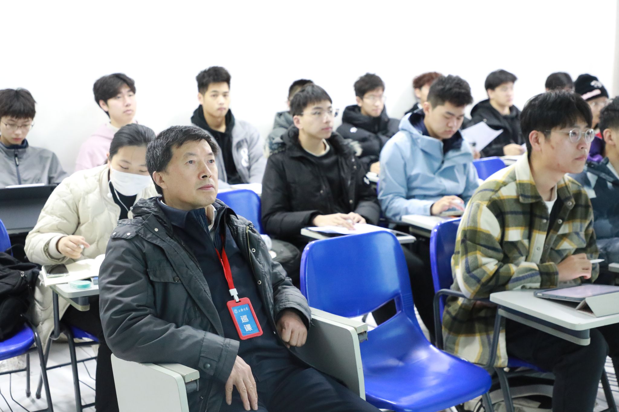 在宝山校区,刘昌胜校长一行走进钱伟长学院开设的本科生课程“材料设计综合实验”,又来到“基础日语”“财务会计”“形势与政策”“物理化学”“法语精读”“毛泽东思想和中国特色社会主义理论体系概论”等课堂,与同学们共上第一课。
