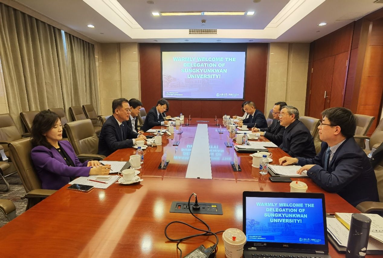 3月28日,上海大学党委书记成旦红会见了来访的韩国成均馆大学校长刘址范(YOO JI BEOM)一行。