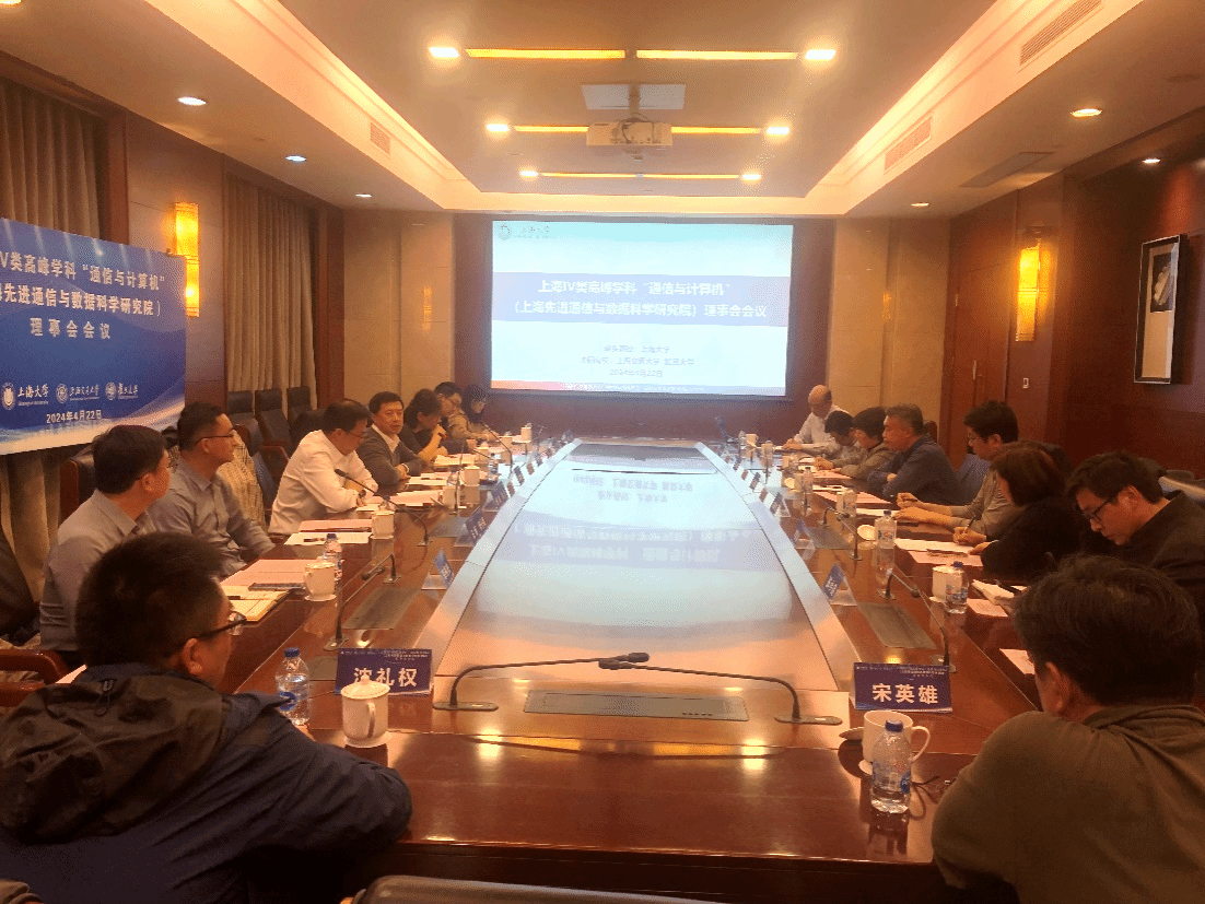 4月22日下午,上海IV类高峰学科“通信与计算机”(上海先进通信与数据科学研究院)理事会会议在上海大学宝山校区举行,上海市教委科研处调研员贺伟伟出席本次理事会会议并指导工作,研究院理事会理事长、上海大学校长刘昌胜院士主持本次会议,理事会副理事长、理事、院长、执行委员会委员以及协同高校上海交通大学、复旦大学代表参加会议。