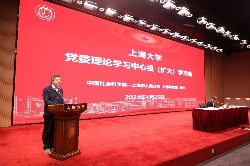本次学习会由中国社会科学院-上海市人民政府 上海研究院承办,上海大学校院两级党委中心组成员、副处以上干部现场参加学习。市委第六巡视组相关同志列席学习会。