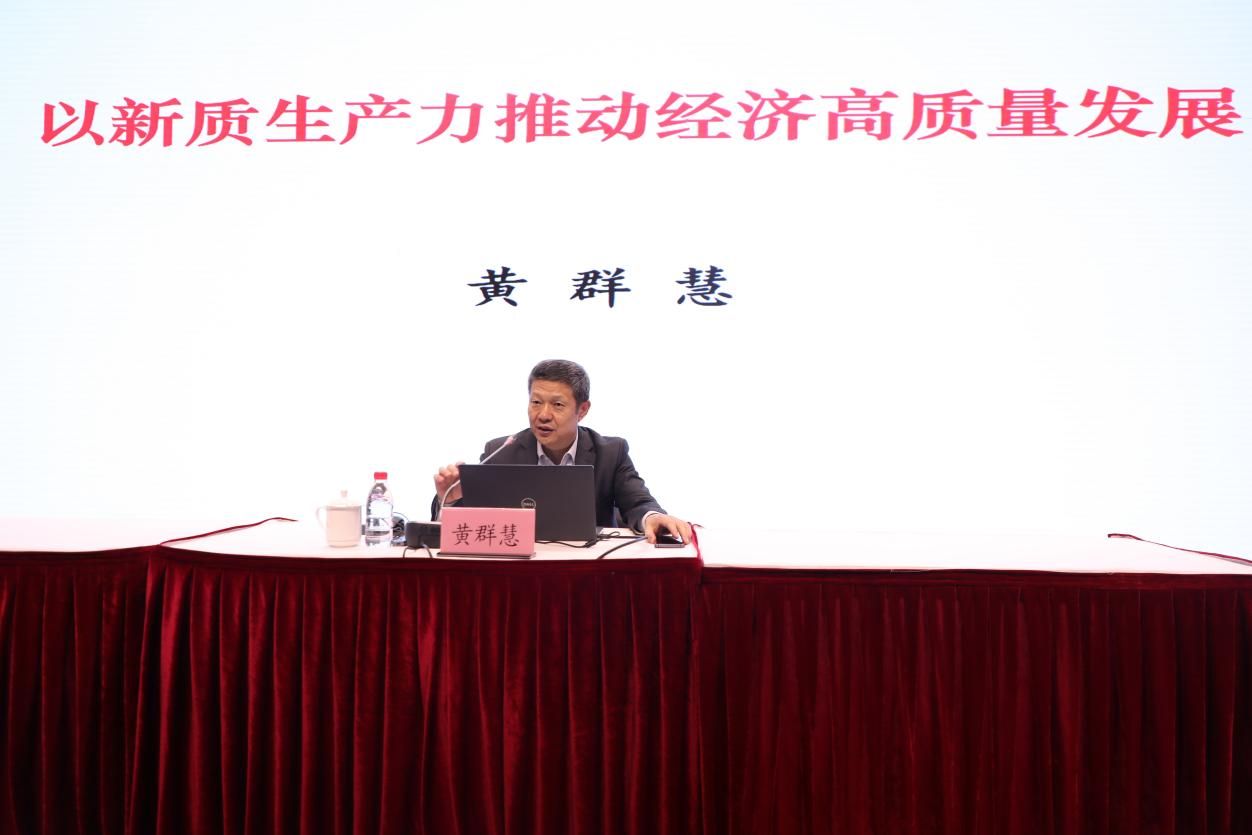 黄群慧聚焦学习习近平总书记关于新质生产力的重要论述,结合中国经济高质量发展新特点新形势,从历史维度、理论渊源、现实逻辑三个角度,深刻阐释了新质生产力是符合新发展理念的先进生产力;深入介绍当下我国经济进入高质量发展新供求平衡时期的特点;深入探讨了以新质生产力推动经济高质量发展的基本路径。