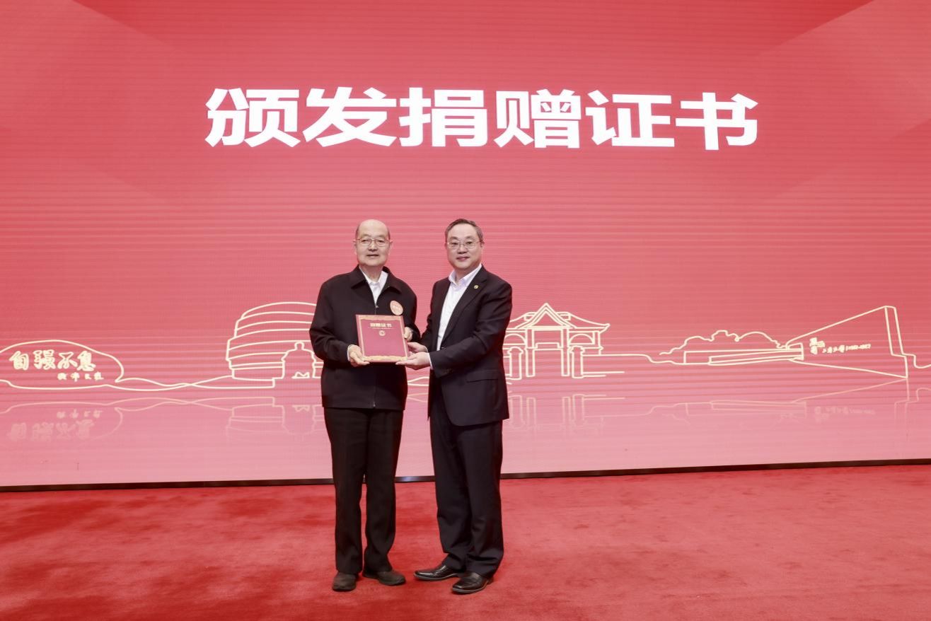 “三代上大人,终身上大情”,邓伟志教授多年来心系学校教育事业,于2019年设立“邓伟志教育基金”,助力学校人才培养,近期他再次将荣获的上海市哲学社会科学学术贡献奖奖金全额捐赠给母校,成旦红书记为邓伟志教授颁发捐赠证书。