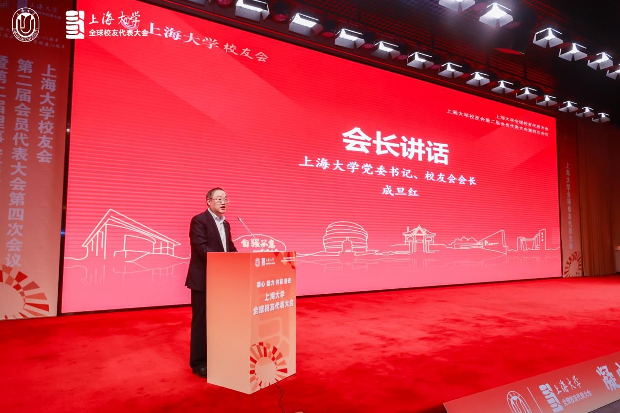 成旦红书记发表讲话。他代表学校全体师生、代表刘昌胜校长和上海大学校友会,欢迎海内外校友代表在美好五月相聚母校,并向长期以来关心和支持学校发展的各校友组织、广大校友及各界朋友致以诚挚谢意。回顾校史,成书记表示,上海大学经历了“建校、奠基、再造、复兴、赶超”五个时期,取得了“综合排名进一步提升、人才培养质量进一步提高、科研实力进一步增强、国际合作网络进一步扩大、校友力量进一步凝聚”五大成果,这背后,离不开全球30多万校友日积月累的辛勤耕耘和鼎力支持。展望未来,成书记强调,母校将“精心服务”广大校友,搭建开放共生、合作共赢、价值共创的校友网络体系,更加积极主动地联系、竭诚地服务,为校友事业发展提供更多、更大的支持;同时也号召广大校友,以母校精神践行者的身份“用心传扬”母校精神、“齐心建设”一流大学,携手助推母校实现高质量内涵式发展,为更好对接国家战略需求与参与现代化建设贡献更多“上大力量”。