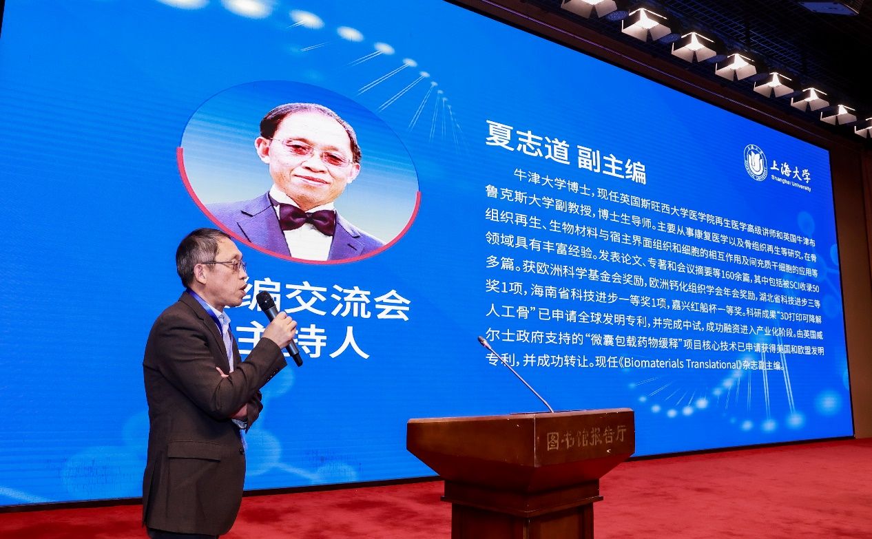 上海大学校长、中国科学院院士、BMT主编刘昌胜致欢迎词,代表上海大学对各位嘉宾、青年学者参加上海大学“五五战略”生物医药高质量发展之创新与转化高峰论坛,表示了热烈欢迎和诚挚感谢。随后,校长从上海大学的学科整体发展现状、“五五战略”发展思路、五五战略的重要组成部分“生物医药”的发展成果、以及BMT杂志创刊和发展四方面进行了汇报和阐述。2021年起,基于学科会战攻克关键核心技术的思路,上海大学实施“五五战略”,即“五朵金花”和“五大阵地”,生物医药是“五五战略”的重要组成部分。上海大学已建设了一批医工交叉高水平科研团队和研究基地;转化医学研究院、上海器官移植工程中心以及苏州上海大学创新中心、温州研究院、南安研究院等校地合作研究院为成果转化提供了良好平台;9家附属医院为学校的临床研究提供了良好条件。2020年Biomaterials Translational杂志正式创刊,杂志以“引领生物医用材料,践行健康中国使命”为愿景,秉承“交叉、融合、创新”办刊理念,以及“高起点、高标准、高质量”办刊特色,在全体编委的通力支持下,已经在生物材料制备和转化领域产生了重要影响。最后,刘昌胜院士再次向在生物材料转化研究领域辛勤耕耘的科研和临床工作者致以诚挚的感谢,并祝愿BMT杂志再创辉煌。