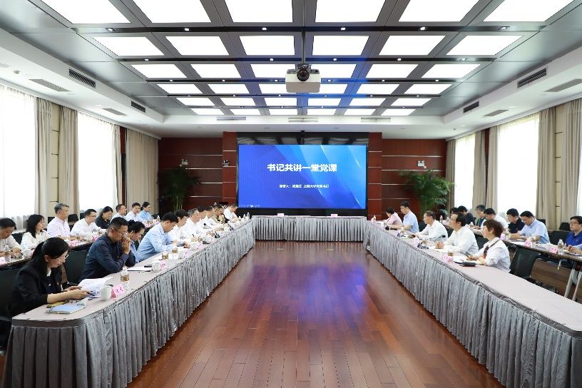 上海大学党委书记成旦红,中国科学院上海分院分党组书记、沪区党委书记李正华共上一堂党课。