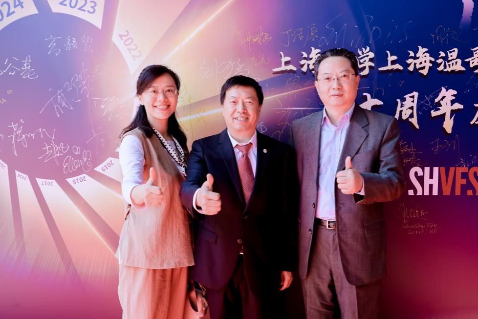 中共上海市委宣传部副部长、上海市文明办主任潘敏,上海大学校长、中国科学院院士刘昌胜,上海文化发展基金会理事长高韵斐,上海大学上海温哥华电影学院院长贾樟柯,温哥华电影学院院长James Griffin,上海大学副校长于雪梅,上海大学上海温哥华电影学院理事长欧阳华,中国电视艺术家协会副主席胡智锋,上海市文联副主席、上海电视艺术家协会主席、国家一级导演滕俊杰,东京国际电影节艺术总监市山尚三,上海电影集团有限公司副总裁、上海谢晋电影艺术基金会理事长徐春萍,上海市委宣传部电影处处长刘祎呐,上海市教委国际交流处处长周勤健,静安区文旅局局长胡慧芬,上海大学上海电影学院党委书记丁友东,上海大学上海电影学院院长何小青,上海大学上海温哥华电影学院执行院长程波,上海市广播影视制作业行业协会副会长兼专职秘书长于志庆,上海大学各部处以及兄弟学院领导、合作单位代表,校友代表,学院师生和媒体记者等齐聚一堂,共襄盛典。