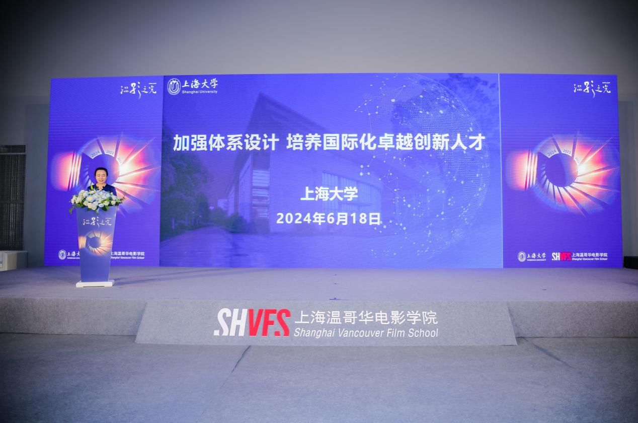 潘敏在致辞中高度评价了上海温哥华电影学院作为上海电影人才培养的重要阵地之一,在完善“电影之城”数字化人才体系方面发挥的独特价值。他表示,未来将一如既往的关注和支持温影的发展,同时希望学院能继续保持创新精神,和上海大学上海电影学院及相关高校一起形成合力,共同建设上海电影发展研究院,深化与国内外优秀院校和产业机构的合作,进一步提升上海电影的影响力和话语权,形成上海电影产业发展新引擎。
