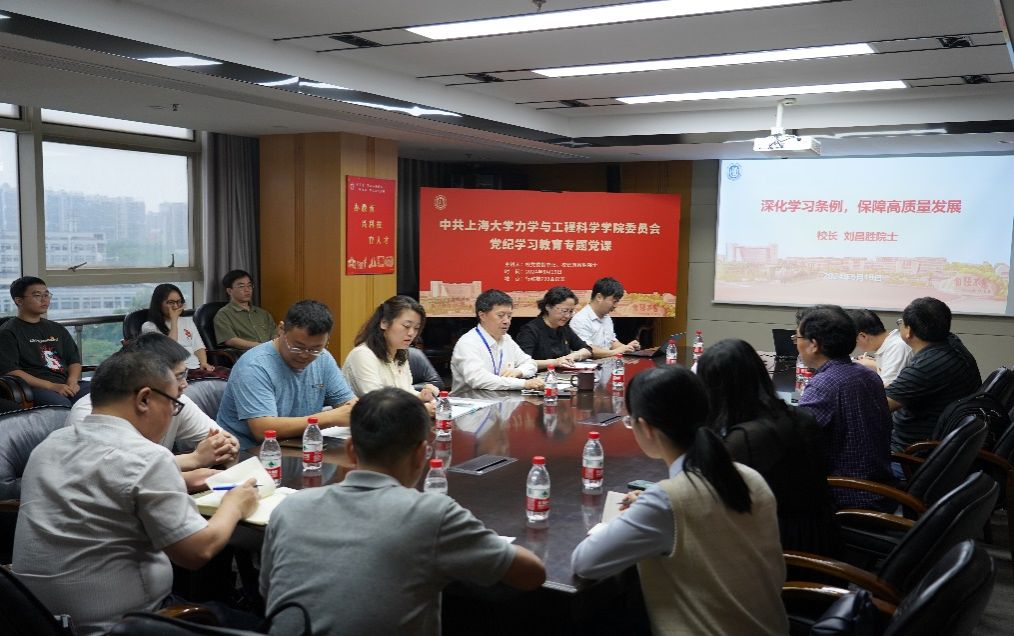 6月19日,上海大学党委副书记、校长刘昌胜院士在行政楼703会议室为所在党支部——力学与工程科学学院固体力学研究所党支部讲授党纪学习教育专题党课。