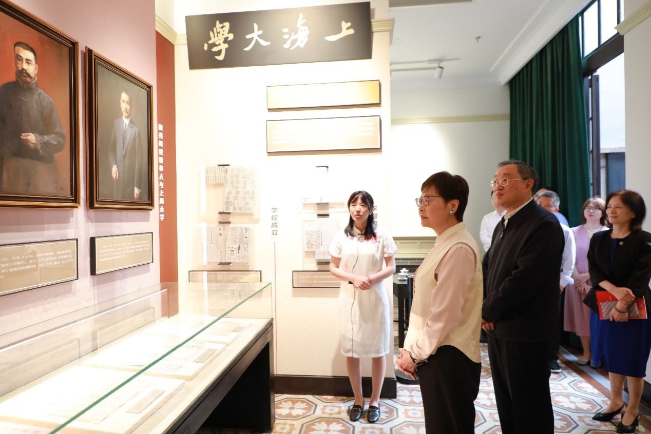 会后,林郑月娥女士一行走进上海大学校史馆,观看了沉浸式校史展演,并参观了上海大学精海海洋智能展厅,成旦红、聂清等陪同。