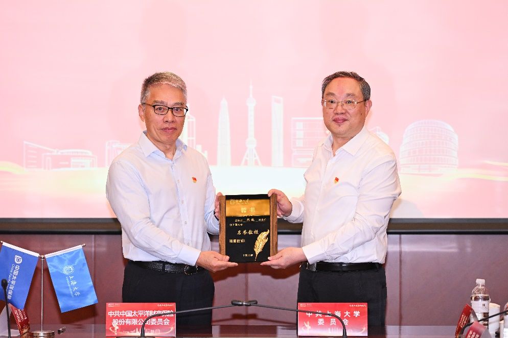 会议最后,上海大学党委书记成旦红为中国太保产险党委书记、董事长顾越颁授了名誉教授聘书。顾越在讲话中表示,作为“全国先进基层党组织”,产险公司高度重视党建工作,希望双方依托由上海市国资委、上海大学、上海红色文化研究院共同发起成立的“上海国企党建研究中心”,在“实”字上下功夫,在“融”字上创亮点,在“新”字上求突破,通过共促组织建设、共建实践基地、共同研究课题、共育干部人才、共用党建载体,建立联系紧密、运转高效的工作机制,形成长期、全面、深度、创新的校企协同党建共建长效模式。