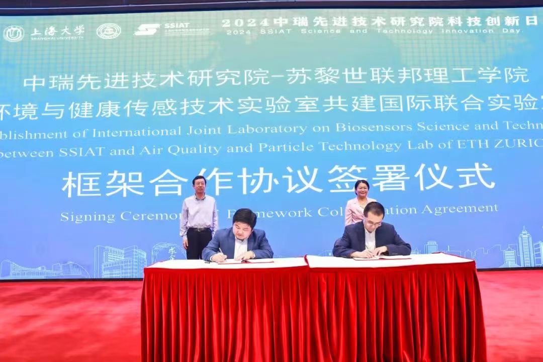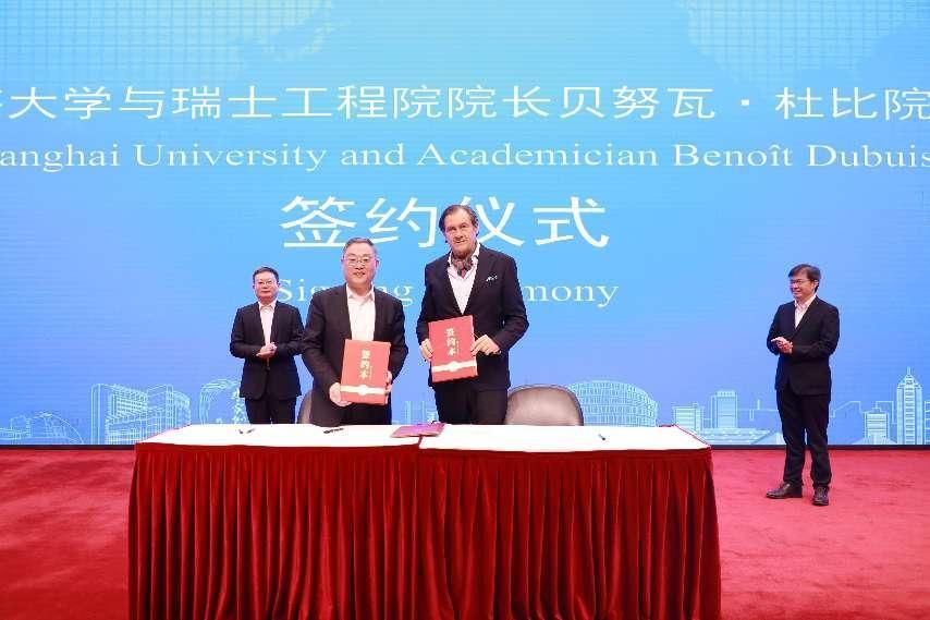 市科委副主任黄红、校党委副书记段勇见证了上海大学中瑞先进技术研究院与苏黎世联邦理工学院环境与健康传感技术实验室共建国际联合实验室框架合作协议签署仪式。