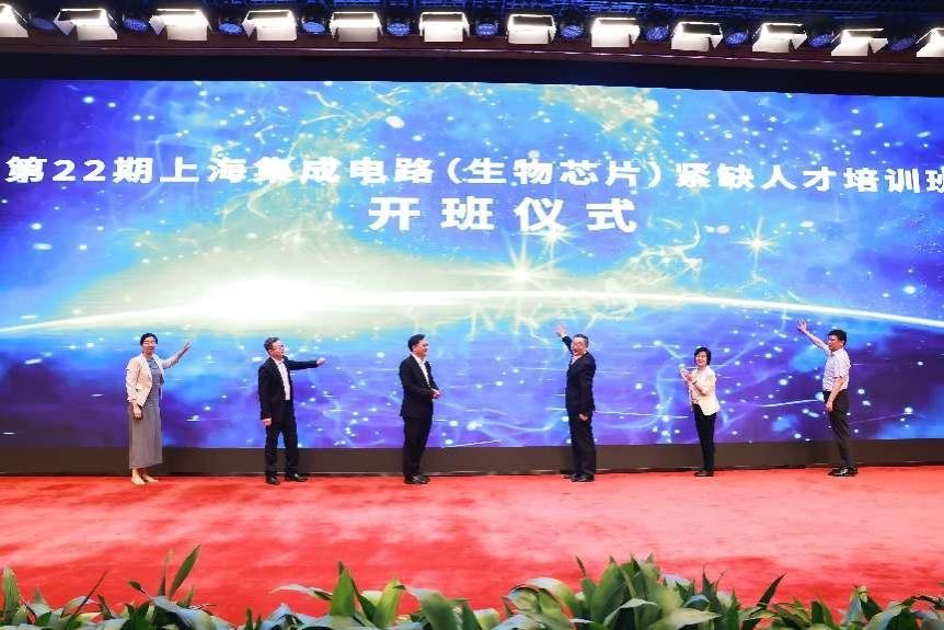 市教委副主任刘力、市经信委副主任汤文侃、嘉定区副区长陆祖芳与上海大学党委书记成旦红,党委常委、组织人事部常务副部长沈艺、微电子学院院长赵建龙共同启动第22期上海集成电路(生物芯片)紧缺人才培训班开班仪式。