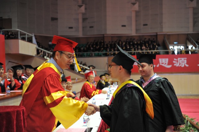 材料科学与工程学院91级校友杜立军先生作为校友代表发言。他用自己从母校毕业22年来的亲身经历讲述了上大人自强不息、求实创新的励志故事。 在校长授权各学院举行学位授予仪式的环节,金东寒校长逐一向各学院领导授权,由各学院组织学位授予仪式,全场师生一起见证这一属于毕业生们自己的荣耀时刻。 随后,全体毕业生在全场老师的监誓下庄严宣誓,将铭记“自强不息”、“先天下之忧而忧,后天下之乐而乐”的校训,履行时代赋予的使命,誓为祖国和人类的美好未来奋斗终身。