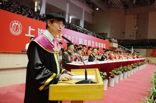 难忘养育之恩,铭记母校之情;分享人生珍贵时刻,定格永恒美好记忆。6月25日上午8:30,上海大学2017届本科生毕业典礼在校本部体育馆隆重举行,校领导、两院院士、终身教授、各部处及院系领导、校友代表、毕业生家长代表以及2017届全体本科毕业生共同出席了毕业典礼。 典礼伊始,毕业纪念视频《致青春》,以“青春不离场、梦想不散场”为主轴回顾了大学四年的宝贵时光,带领全场师生重温了2017届毕业生们大学生活的精彩瞬间。