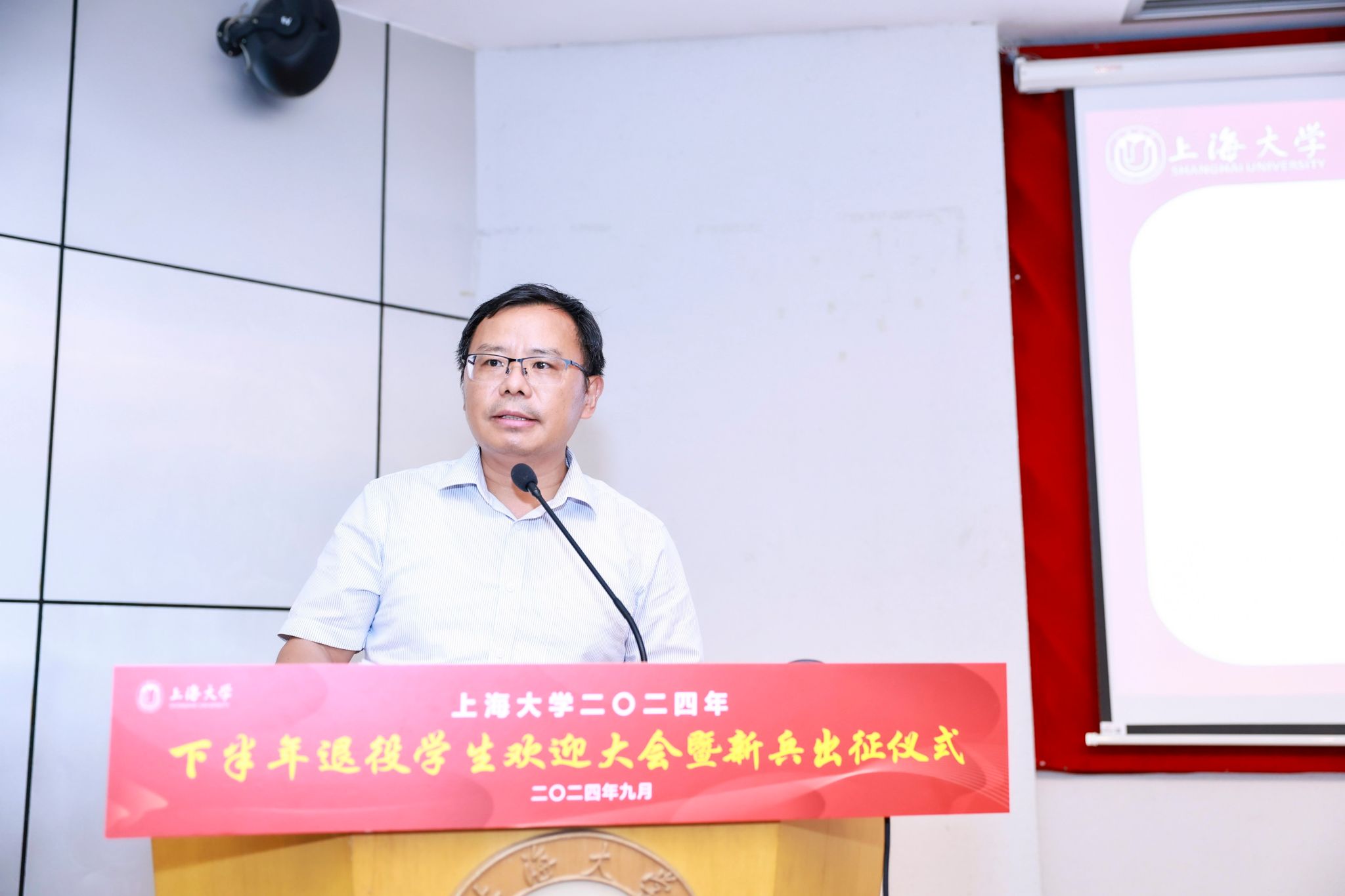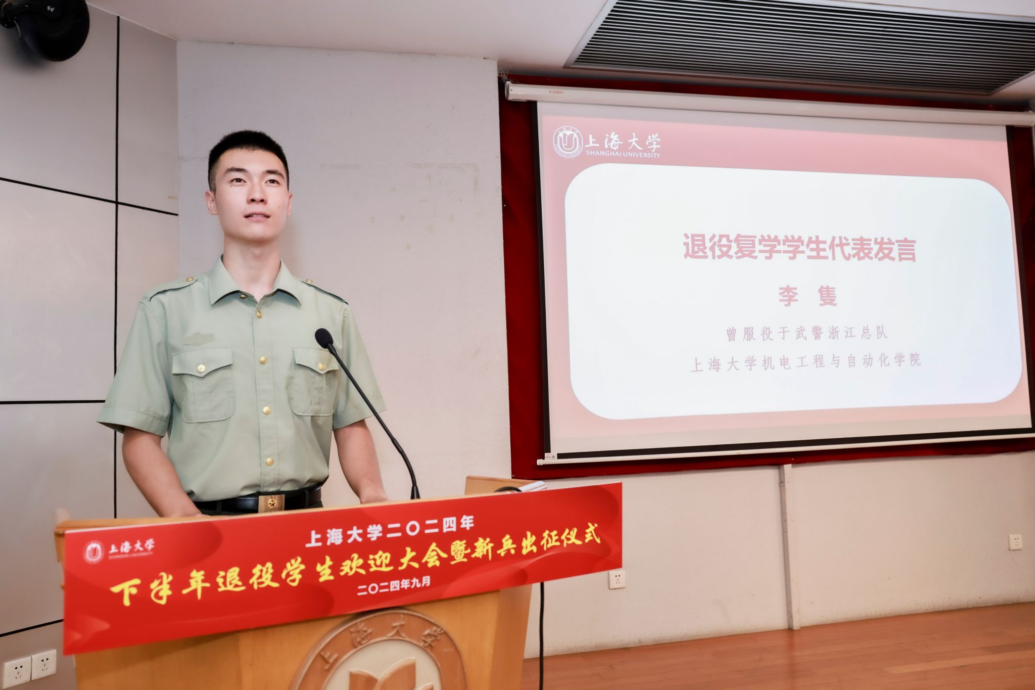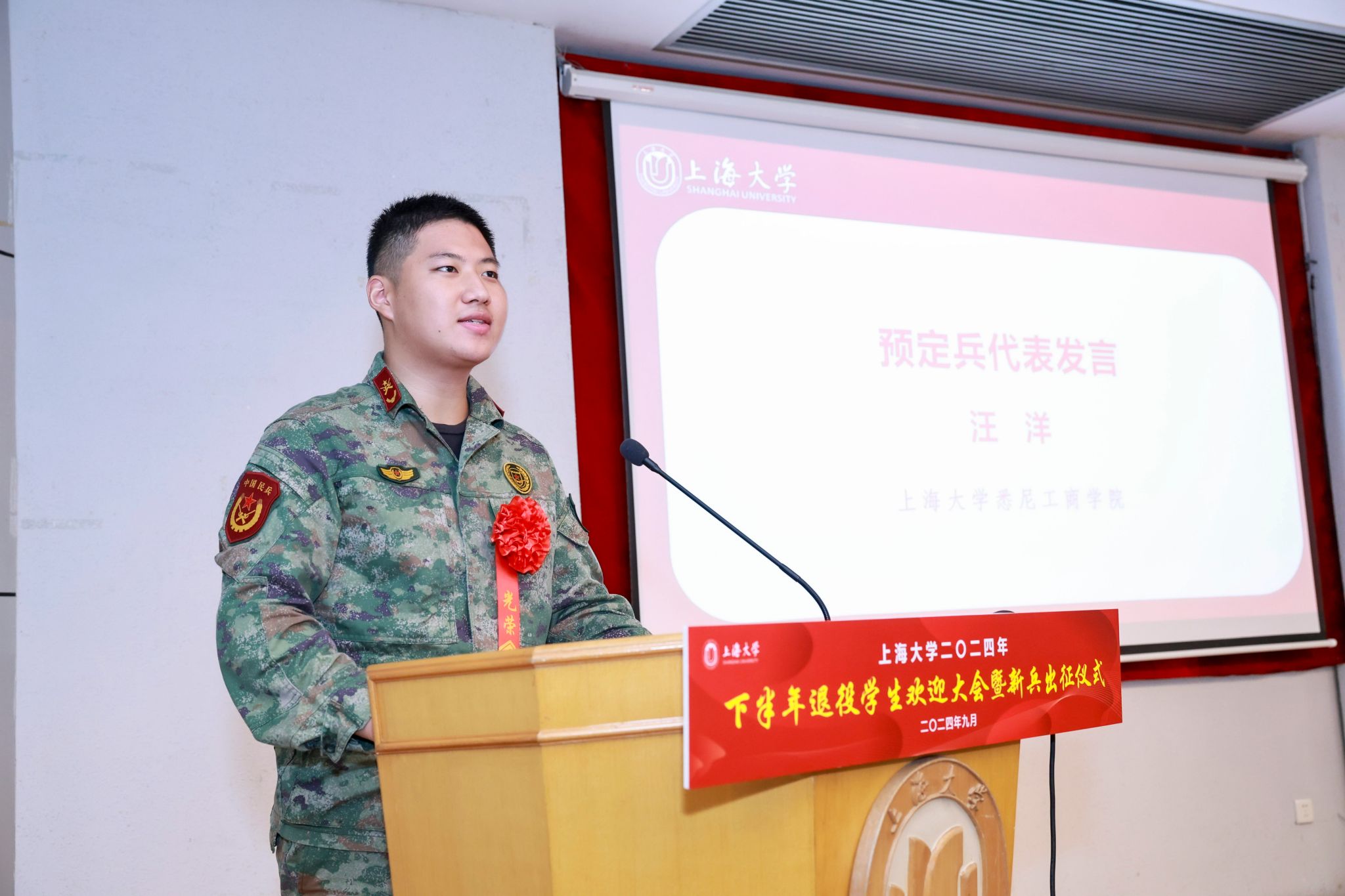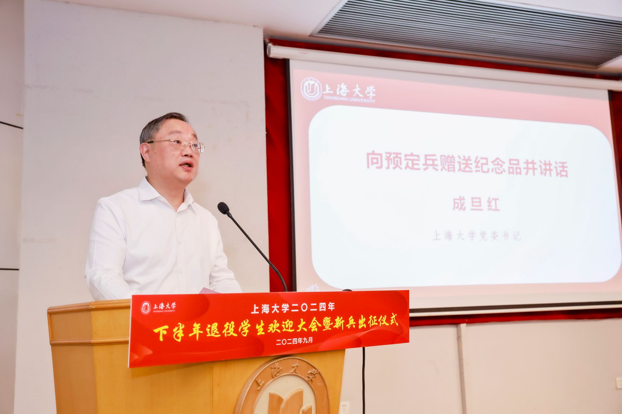 9月6日下午,上海大学2024年下半年退役学生欢迎大会暨新兵出征仪式在宝山校区行政楼报告厅举行。上海大学党委书记成旦红,党委副书记、副校长胡大伟,上海能源建设集团有限公司、中国电信上海公司、春秋航空和海信集团代表,学校相关部处、学院领导,教师、学生、家长代表参加活动。活动由孟祥栋主持。