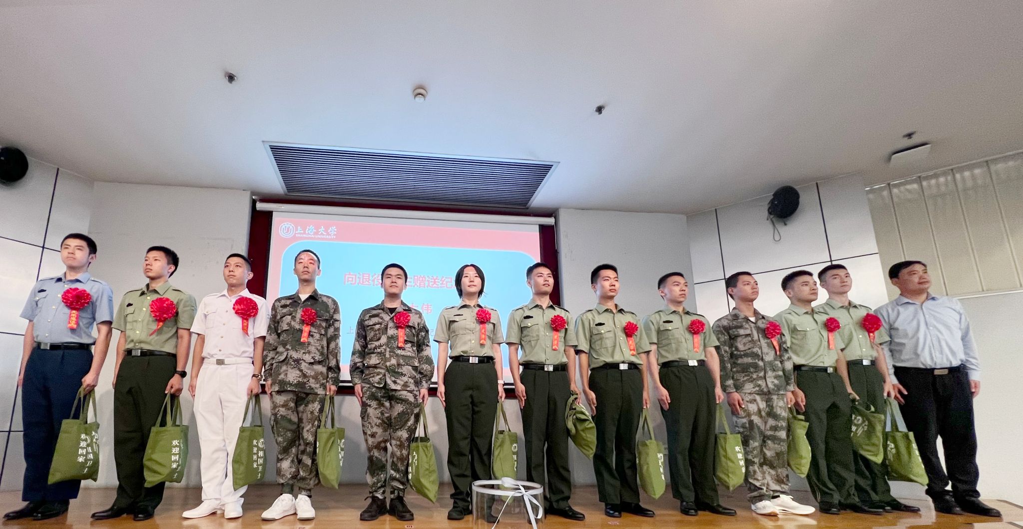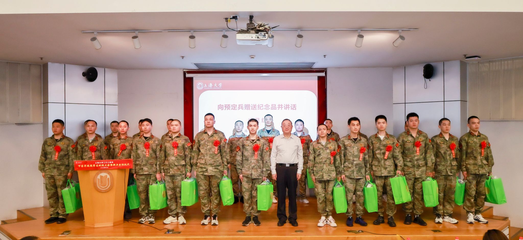 活动在庄严的国歌声中拉开序幕,孟祥栋先后介绍了上海大学2024年下半年退役学生及预定兵情况。机电工程与自动化学院李隻代表退役学生分享在部队期间的收获,校领导胡大伟向退役学生赠送纪念品。悉尼工商学院学生汪洋代表预定兵发言,表达了将在军营建功立业的决心。理学院王席杰同学的父亲王德平先生作为预定兵家长代表发言,表达了家长们对孩子投身军营的坚定支持和殷切期望。招生就业处处长陆瑾向给予我校应征毕业生“带岗入伍”机会的上海能源建设集团有限公司、中国电信上海公司、春秋航空和海信集团四家企业负责人赠送锦旗,感谢企业对于上海大学征兵工作的支持。