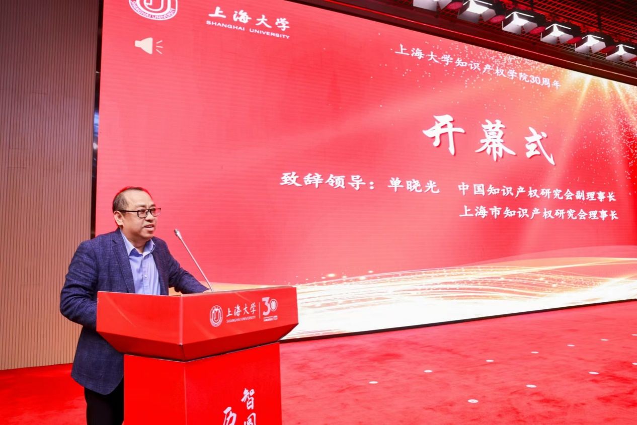 论坛伊始,播放了上海大学知识产权学院成立30周年院庆视频。成旦红书记、单晓光理事长、陶鑫良名誉院长、游闽键律师分别致辞,对上海大学知识产权学院成立30周年表示热烈祝贺,对学院未来发展送上美好祝福。