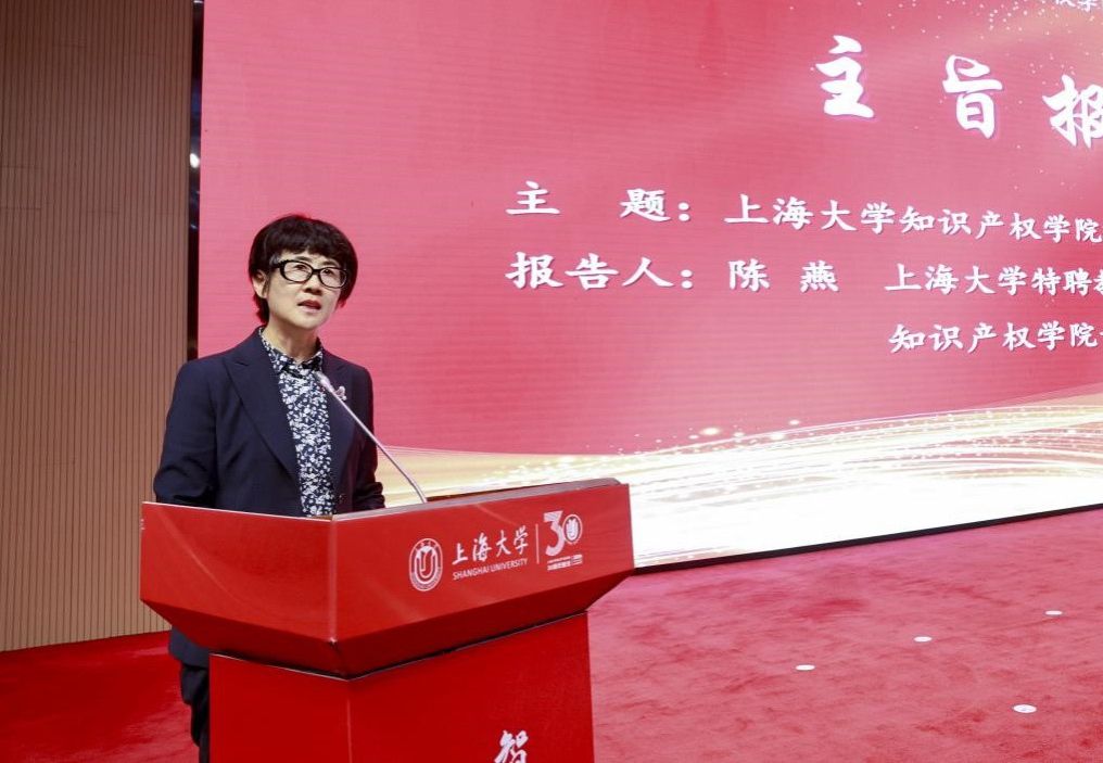 中国知识产权报社原党委书记、副社长,上海大学特聘教授陈燕作题为《上海大学知识产权学院30年回顾与展望》的主旨报告,通过回顾学院30年的发展历史与未来发展前瞻展望,为知识产权学院的持续发展凝聚智慧与力量。